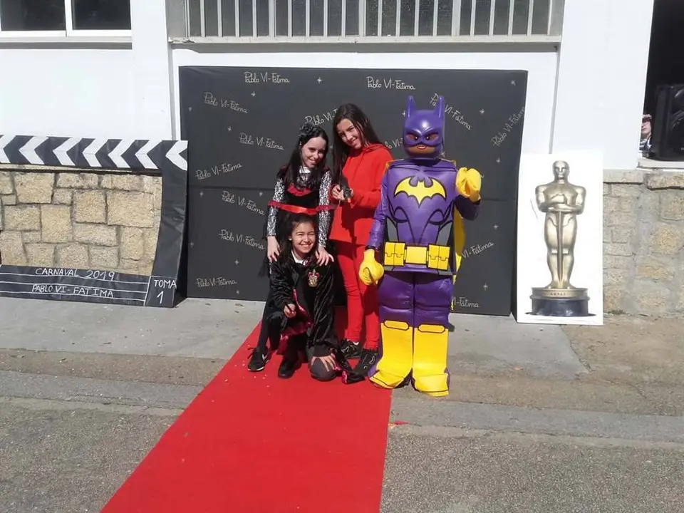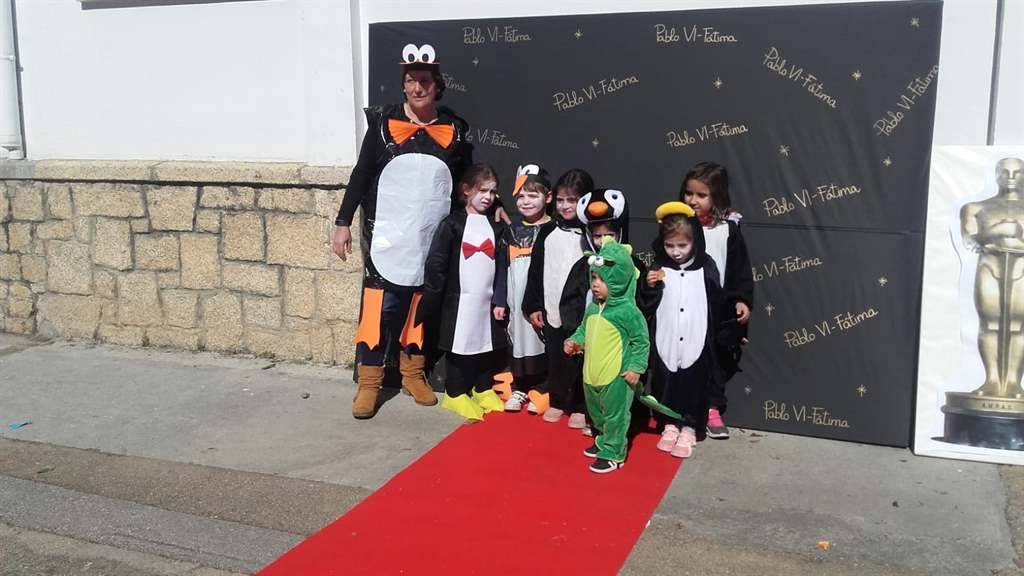 Como si de verdaderos actores y actrices se tratasen, los alumnos de primaria e infantil del colegio Pablo VI de A Rúa desfilaron por la alfombra roja para llegar a la zona habilitada para ser fotografiados y entrevistados (photocall). La única publicidad que se veía era la de su colegio, Pablo VI.
