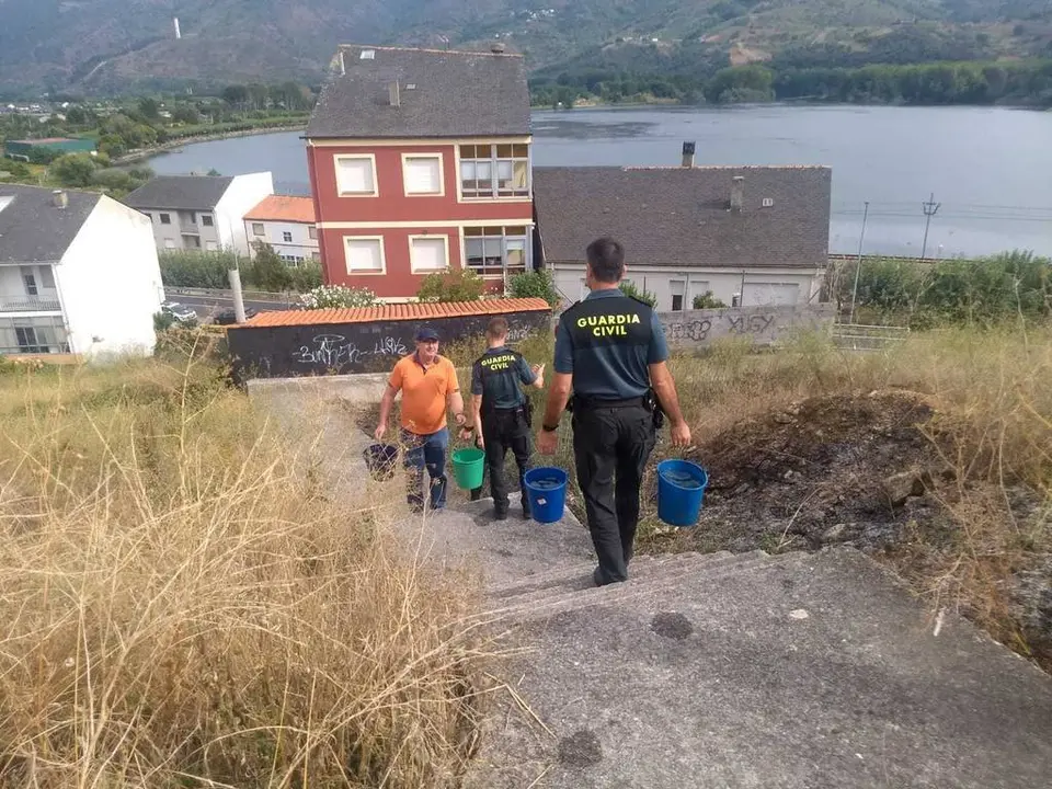 Al lugar se desplazó una patrulla de la Guardia Civil, dos vehículos de bomberos del Parque de A Rúa, dos brigadas de extinción de incendios y la Policía Local.