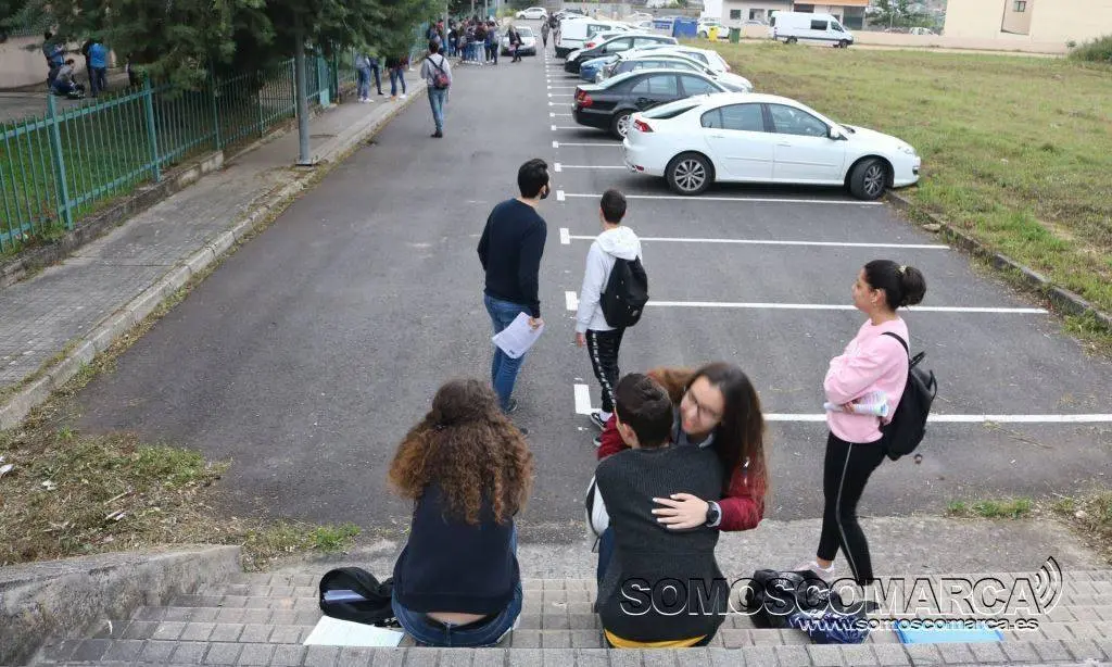 109 alumnos de 7 centros diferentes se congregaban hoy a las puertas del IES Cosme López de A Rúa para realizas las pruebas de la Evaluación de Bachirellato para Acceso a la Universidad, EBAU, la nueva selectividad. Una segunda generación de estudiantes que hoy concurrían a ellas en su totalidad puesto que tocaba examinarse de las materias comunes de lengua, historia, gallego e inglés.