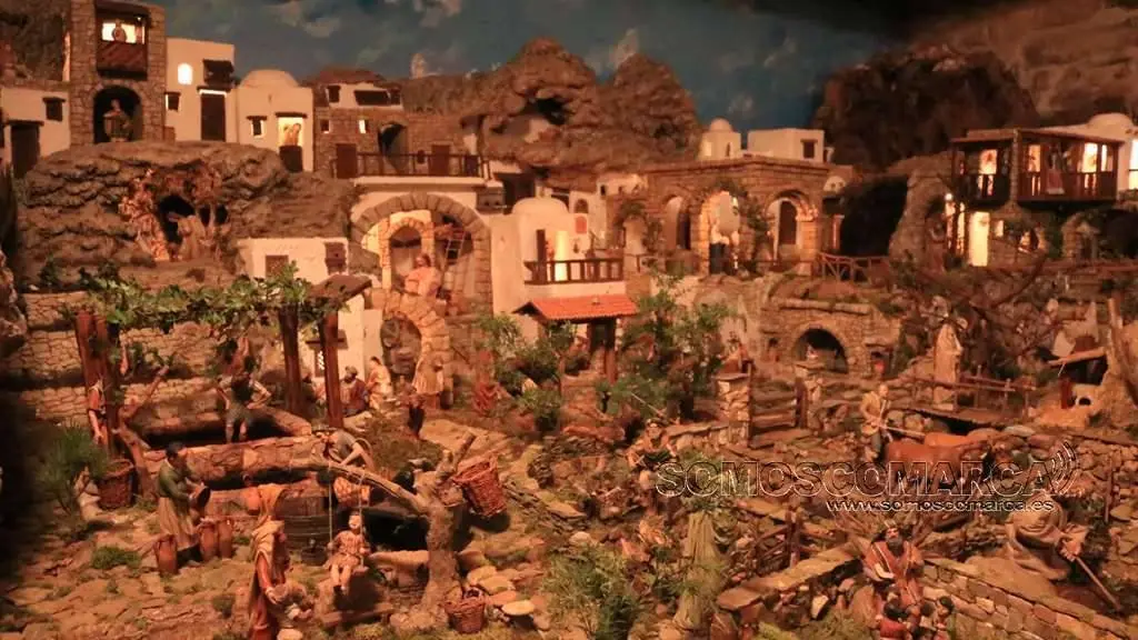 En él se diferencias varias zonas geográficas, Nazaret, Incarín, Jerusalén, Belén y Egipto y en cada una de estas se recrean distintas escenas bíblicas. «Mostramos desde la anunciación del Ángel a la Virgen al bautizo en el río Jordán», explica Carmen Núñez. Pero además de los momentos, también se recrean las construcciones, como por ejemplo, el Templo de Jesuralén.