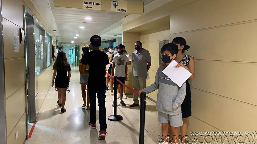 Desde primera hora de la mañana de este lunes, 23 de agosto, el hall del Hospital Público de Valdeorras ha estado lleno de jóvenes de entre 12 y 14 años que acudían a ponerse la primera dosis de la vacuna contra la covid, en este caso de Moderna.