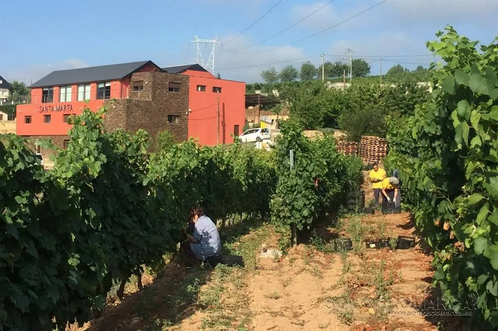 Una de las bodegas de la comarca que arrancaba la cosecha de vid este jueves era la Adega Santa Marta. Su enólogo, José Moreno, explicaba que la vendimia que están realizando es la del godello que destinan a la creación del vino tostado, un caldo que ellos introdujeron dentro de la bodega y que es bastante peculiar.