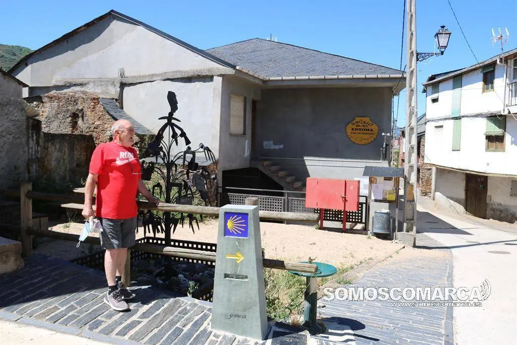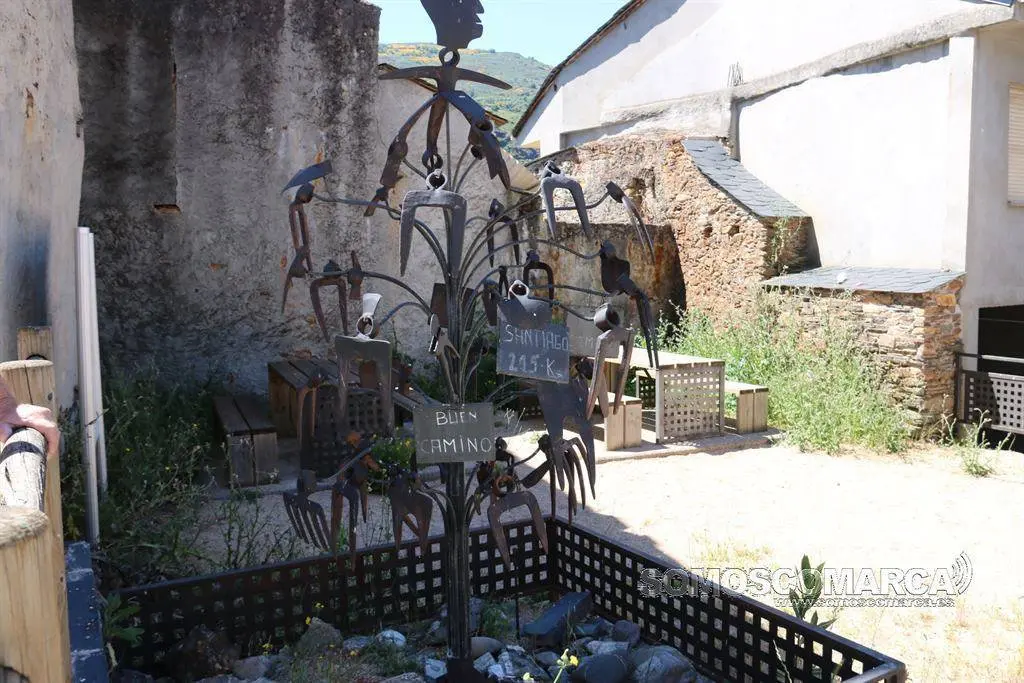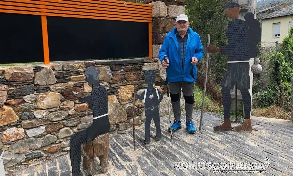 Pero la pizarra no ocupa todo su corazón, sino que lo comparte con Éntoma. Y Raúl ha aprendido a compaginar ambas cosas por lo que está dejando su pueblo precioso. Las últimas figuras, unos peregrinos que reflejan también su afición por caminar. «Pedimos permiso y el alcalde me dijo que quedaría bien en el Camiño. Por eso lo pusimos en la plaza». En este audio nos cuenta todos los detalles de estas figuras: