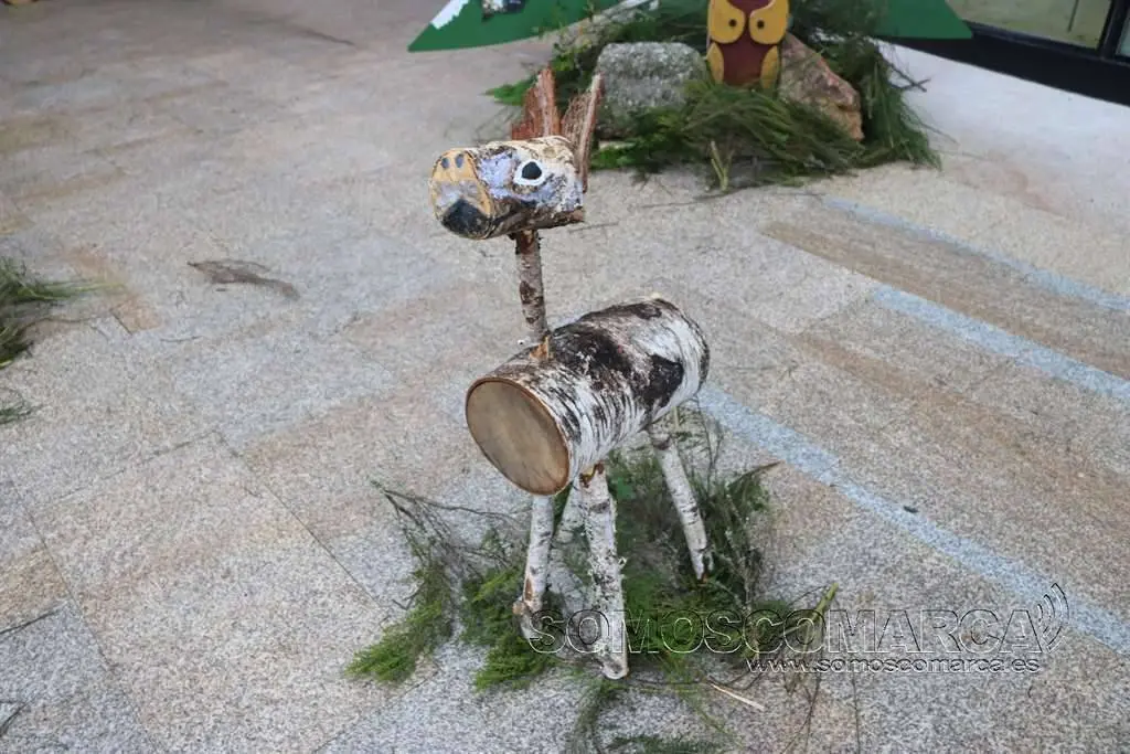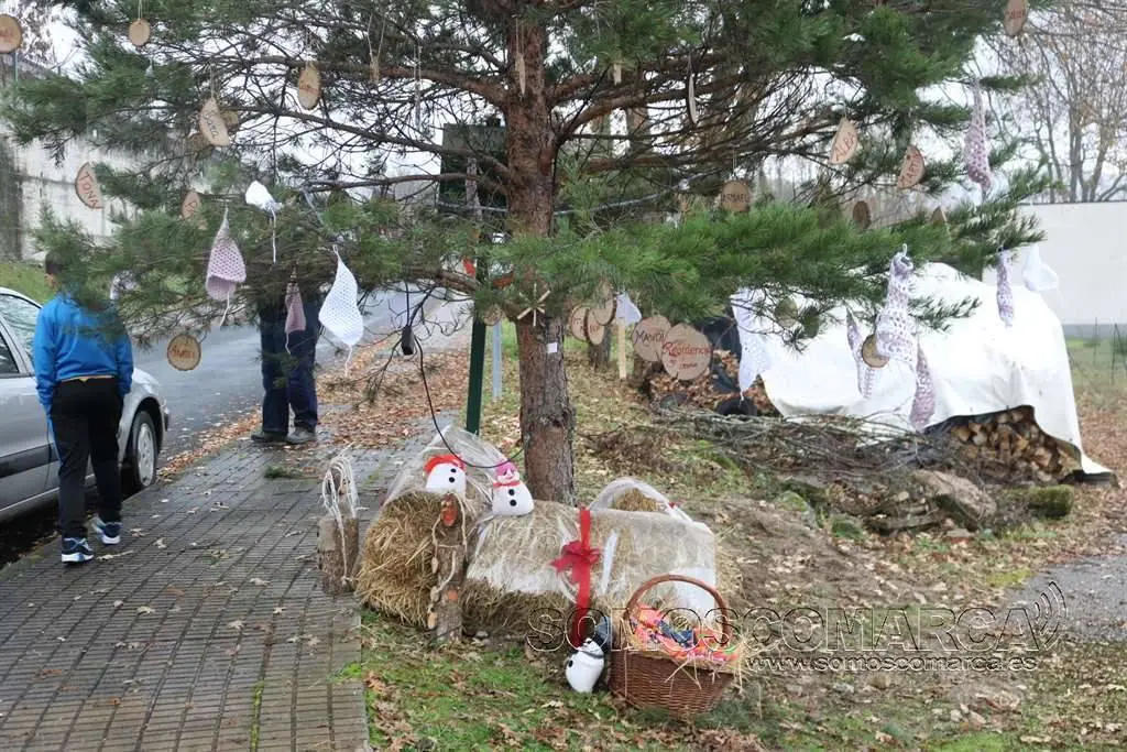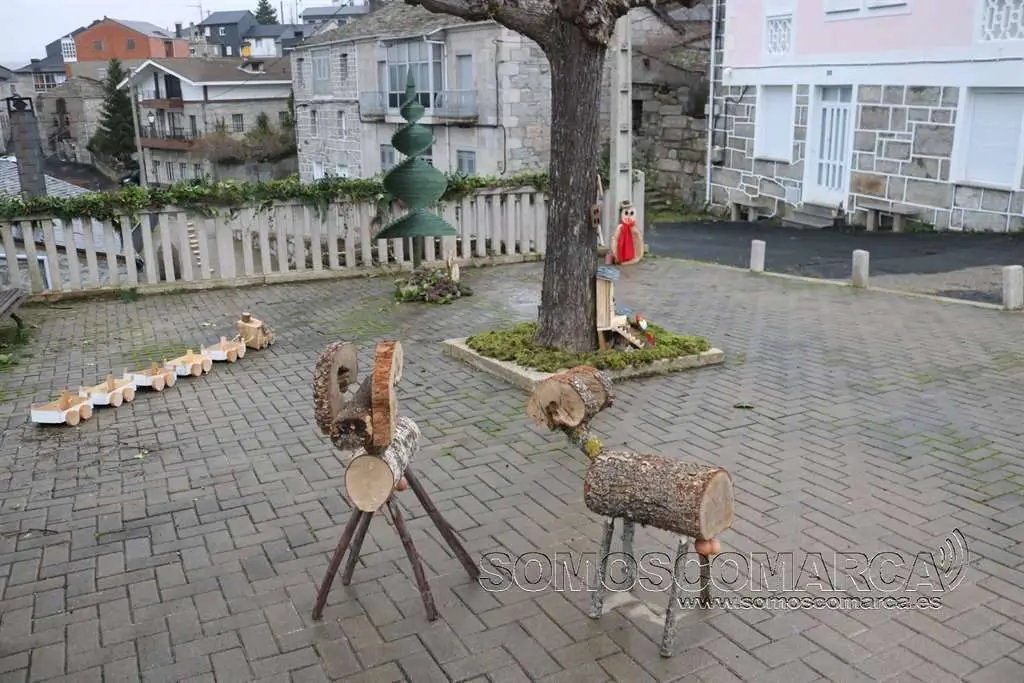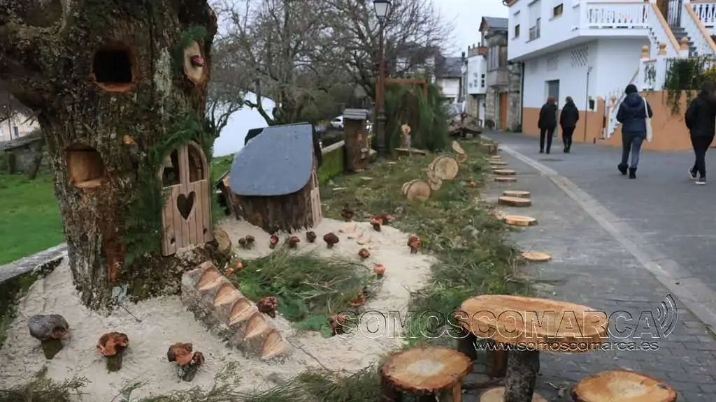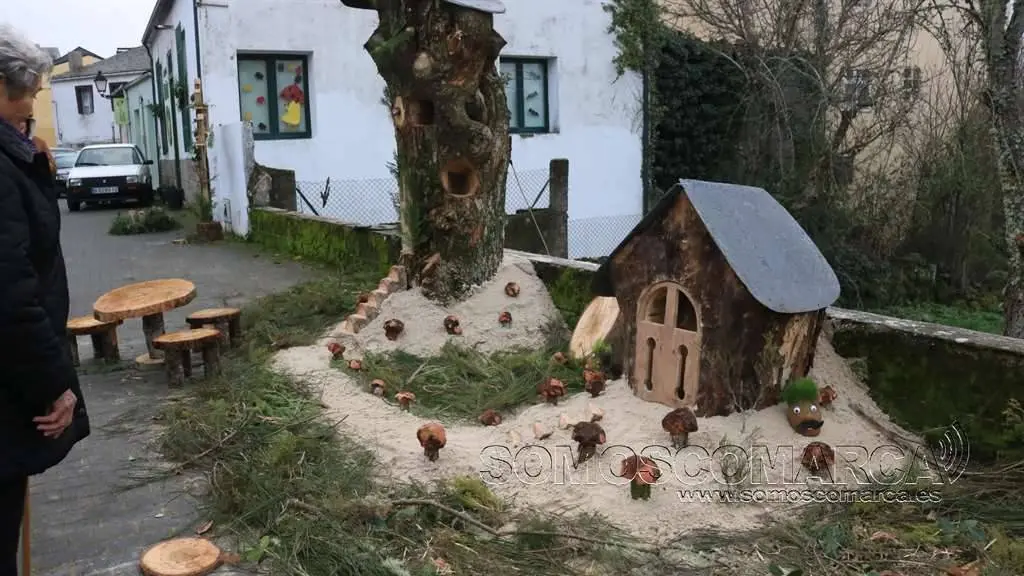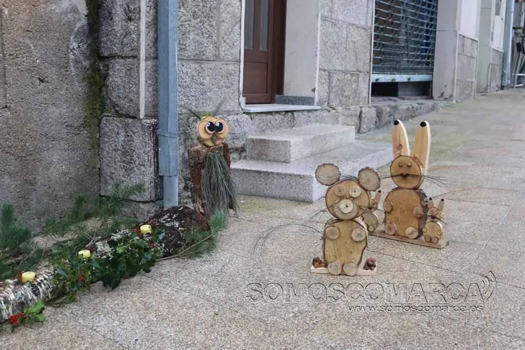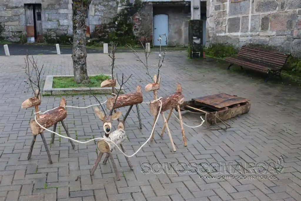 Troncos de carballo, acebros, gallas de pino, ou polas de carqueixa dan forma ás figuras de Nadal dunha veciñanza entregada o seu pobo.