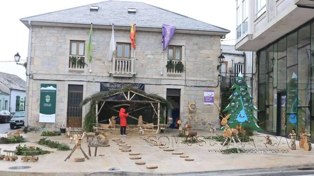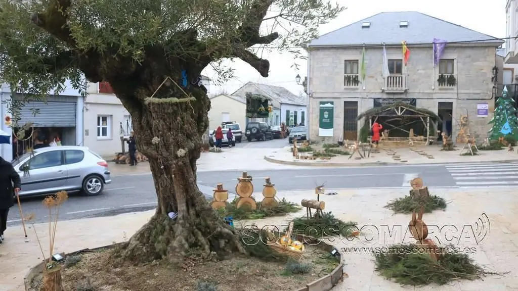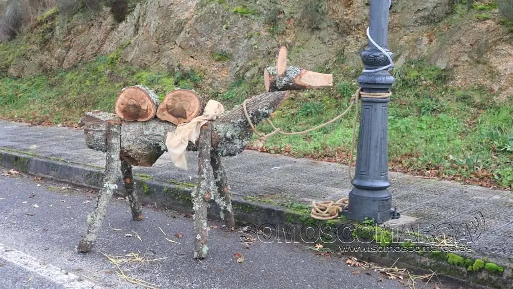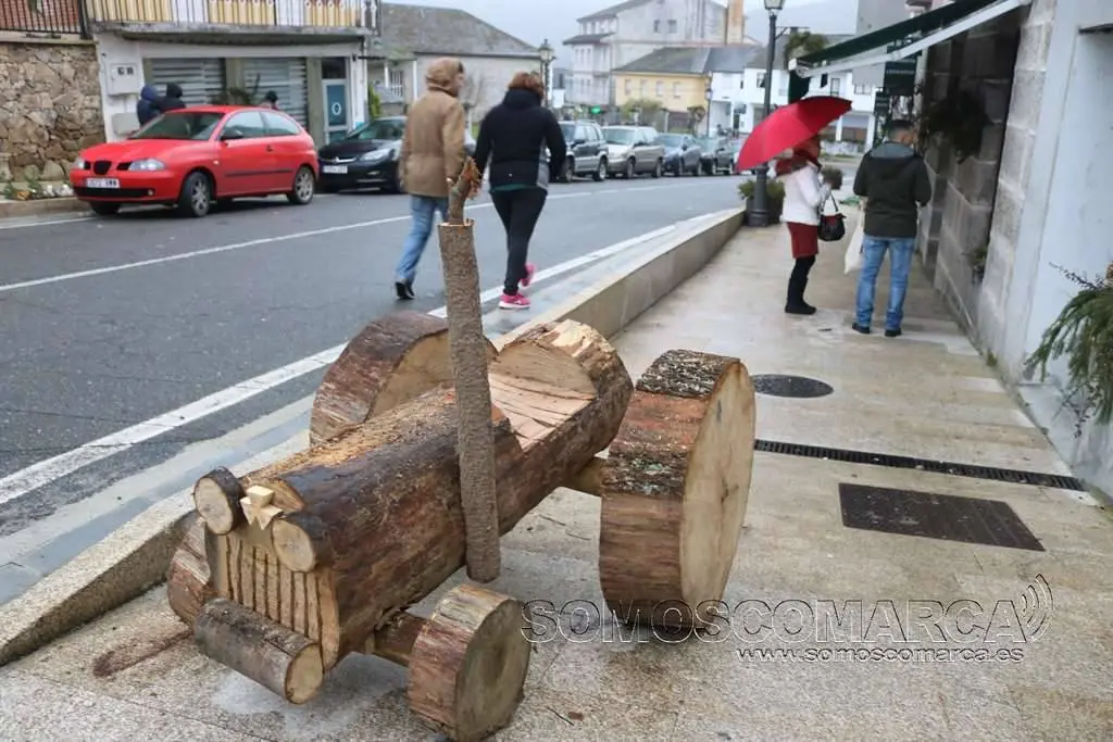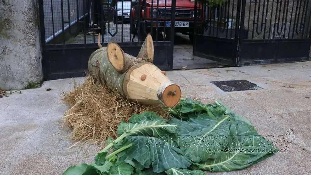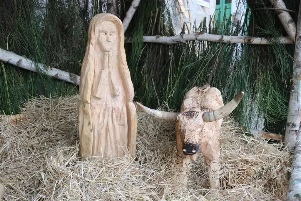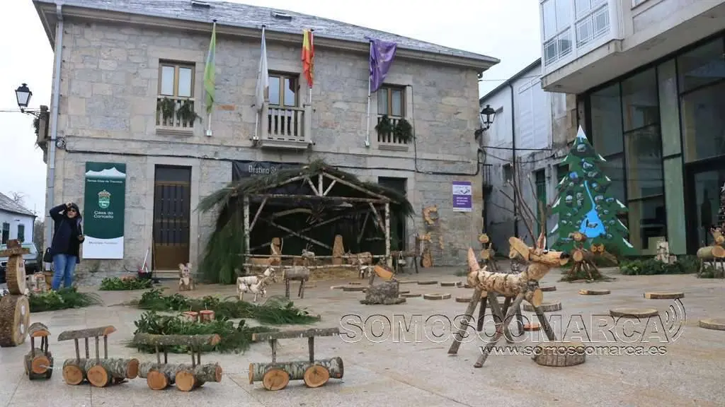 Troncos de carballo, acebros, gallas de pino, ou polas de carqueixa dan forma ás figuras de Nadal dunha veciñanza entregada o seu pobo.
