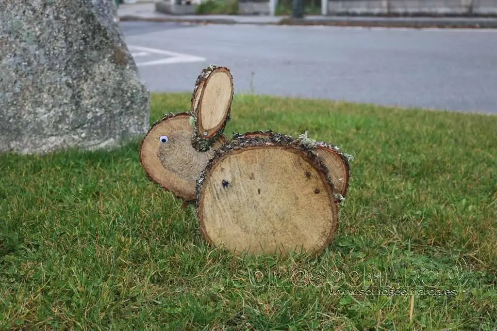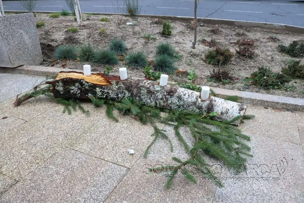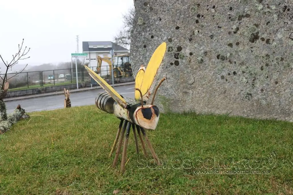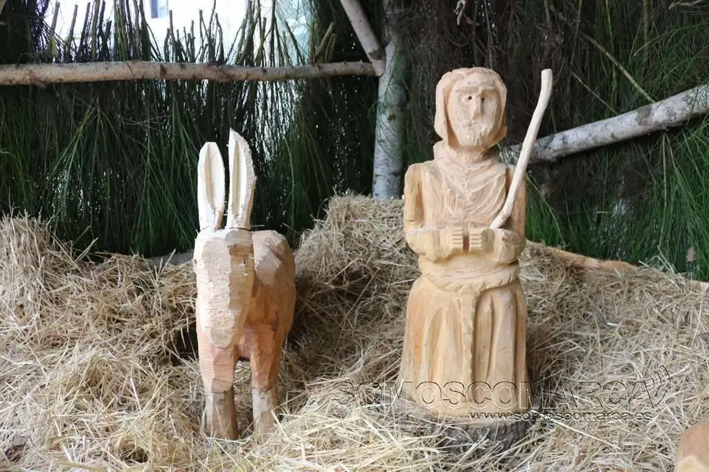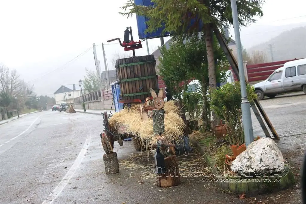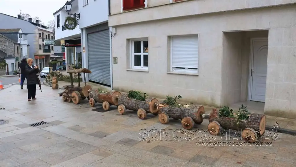 Troncos de carballo, acebros, gallas de pino, ou polas de carqueixa dan forma ás figuras de Nadal dunha veciñanza entregada o seu pobo.