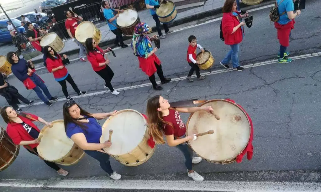 Bailando e tocando arrancaron de novo rua Nova arriba para chegar a praza do Toural onde, de novo pararon e actuaron. Desde a praza subiron as escaleiras hacia a rúa do Toural para baixar pola Pateira até a praza do Concello onde os membros dos folións quedaron a ver as actuacións dos compañeiros.