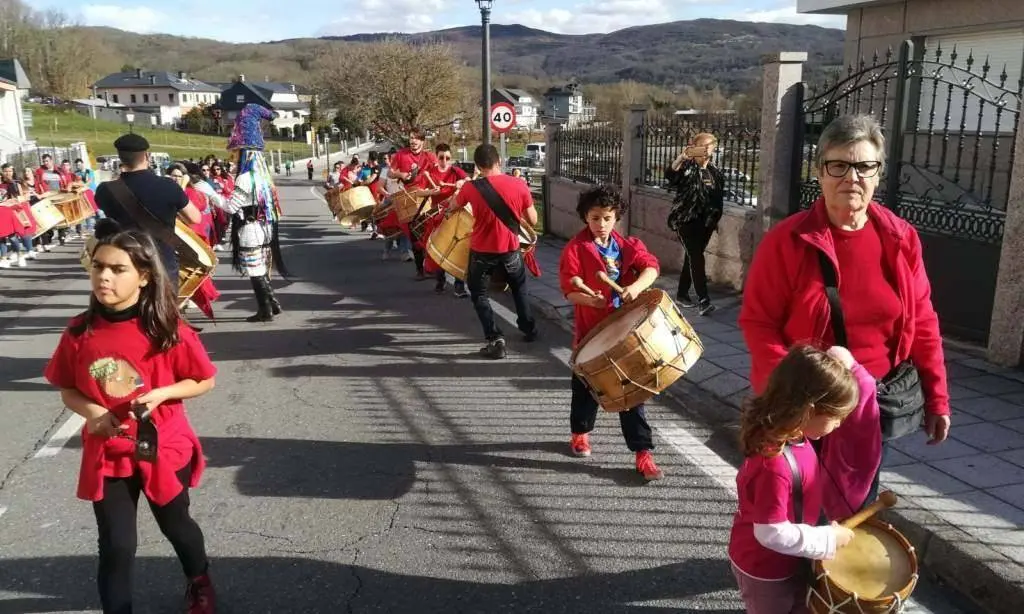 O desfile comezou as 16:30 horas na rúa Entrecaldeiras, á entrada do pobo, antes da rotonda que leva ao colexio. Logo os folións seguiron rúa arriba cara a praza do Concello onde, se detiveron para mostrar ós espectadores as súas destrezas con bombos, aixadas, e demais aparellos de labranza. Tamén foi o lugar para que os boteiros, máscaras, charrelos, bois, Morte e demais personaxes do Entroido se meteran coa xente que os estaba vendo.