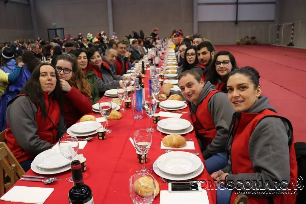 Tras finalizar el desfile, unas 500 personas se dieron cita en el Pabellón para la decimocuarta edición de la fiesta de la Soa. Tal y como señaló la cocinera de este suculento manjar, el menú se componía de sopa de cocido, garbanzos, repollo y patata además de lacón, soa, chorizo, patata, oreja, bica, licores y café. “Tenemos cerca de 500 kilos de carne, 250 de patatas y verdura y 40 kilos de garbanzos”, anunciaba.