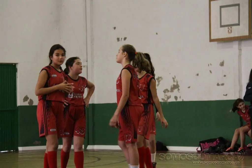 A las 16:15 jugaban las Benjamines un partido donde el otro equipo era superior y se notaba más veterano que nosotras. Las nuestras pese a ello disfrutaron y pelearon por cada balón, llegando a canasta y pasándose mucho el balón.