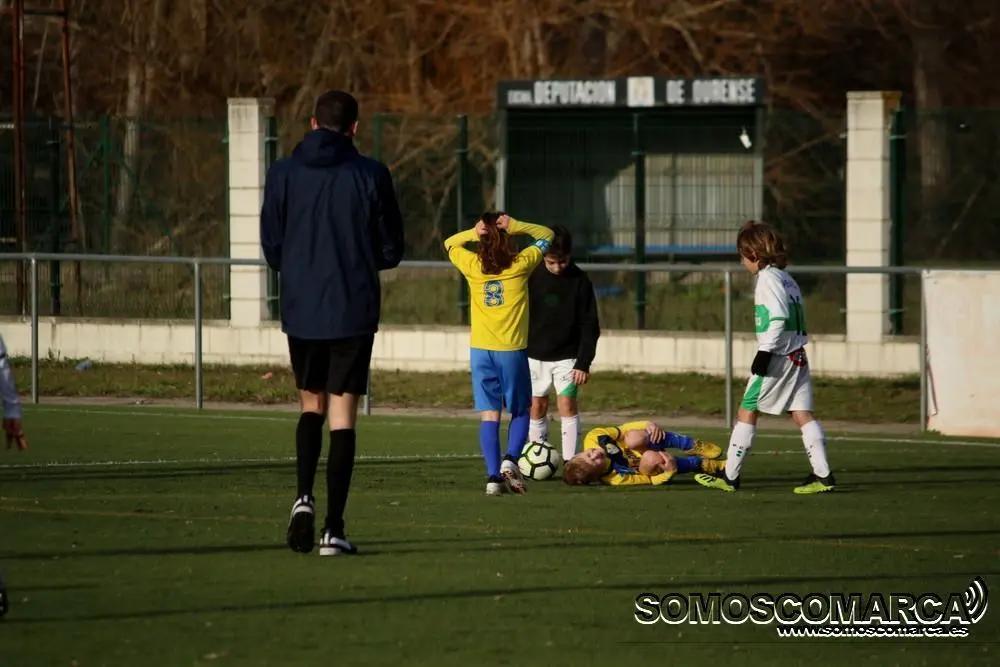 Cerró la tarde el partido del benjamín "B" ante el Ourense CF "B". Los de Bolo y Ana se impusieron al cuadro de Oira tras sentenciar en el segundo tiempo. Abrieron el marcador con un gol en propia meta de los visitantes a los 14 minutos. Pese a todo empataría el Ourense gracias a Rubén antes del descanso. En la segunda mitad los goles de Adri Anta, Iris y Jairo allanaron el camino para los amarillos.