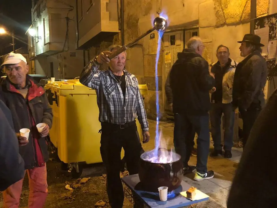Pero non só había castañas neste singular magosto. As integrantes da Asociación Cultural O Mosteiro encargáronse de repartir chourizos, asados ou cocidos, a cada veciño que se acercase. E, para baixar a comida, houbo bica e unha queimada que deixou a todo o mundo coa boca aberta.