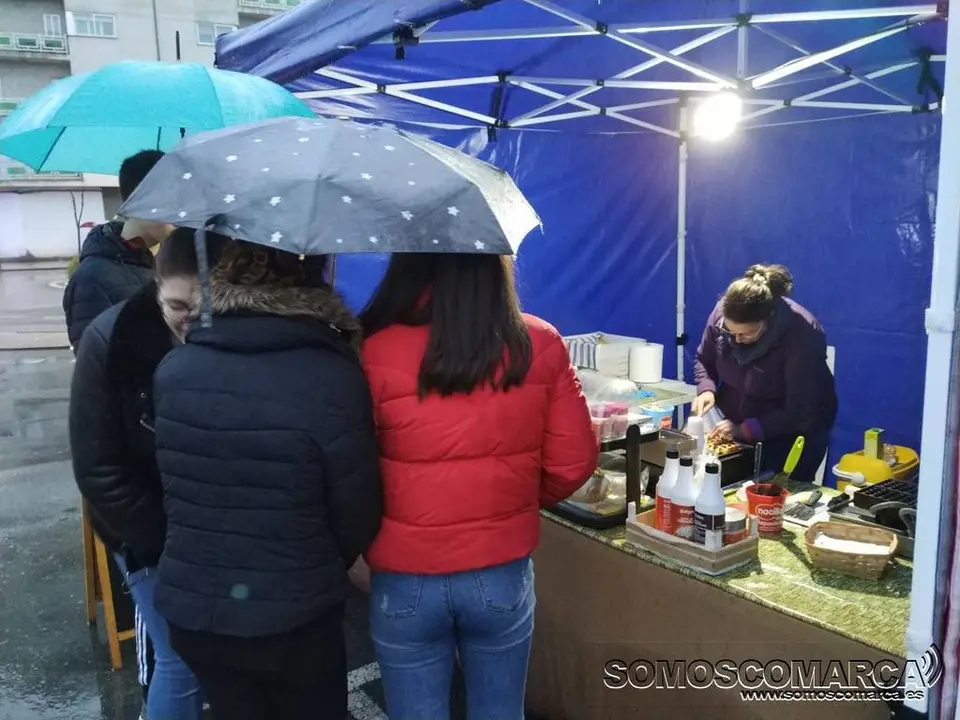 Durante a mañá os comerciantes recibiron a visita do pregoeiro da Festa do Botelo Roberto Vilar, quen non dubidou a hora de acercarse aos postos pese ao mal tempo.