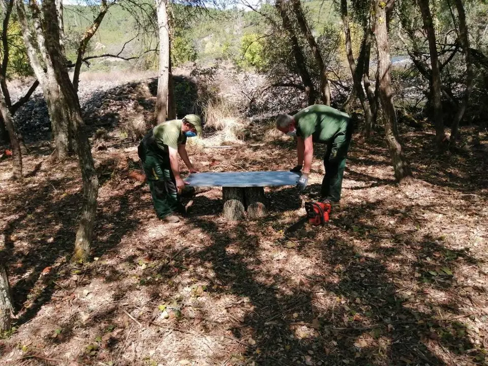 Hace unos meses el concello desbrozó varias zonas de bosque y «quisimos poner en valor historias bonitas y de los propios árboles». Es por ello que desde el obradoiro se pusieron manos a la obra y crearon señales que explican que tipo de especie es, de dónde proviene… Ahora, también la usan como mesas en el entorno del río Sil.