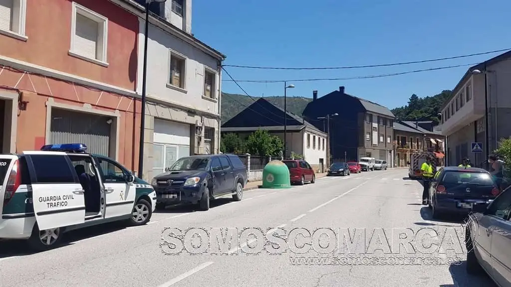 La colisión lateral entre un vehículo pick-up y una moto a la altura del número 35 de la calle Leoncio Fernández, en Sobradelo, se salda con un herido grave —el conductor de la moto— que fue trasladado al Hospital Público de Valdeorras en una ambulancia del 061.