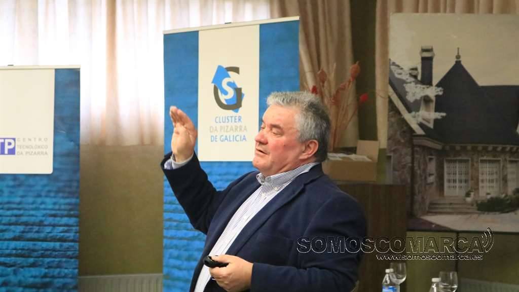 El doctor ingeniero de minas Fernando López González-Mesones fue el encargado de cerrar esta jornada técnica del Clúster presentando el proyecto "Caracterización tecnológica de las pizarras gallegas, como material de construcción, para otras aplicaciones complementarias a las tradicionales de cubiertas. Fase 2".