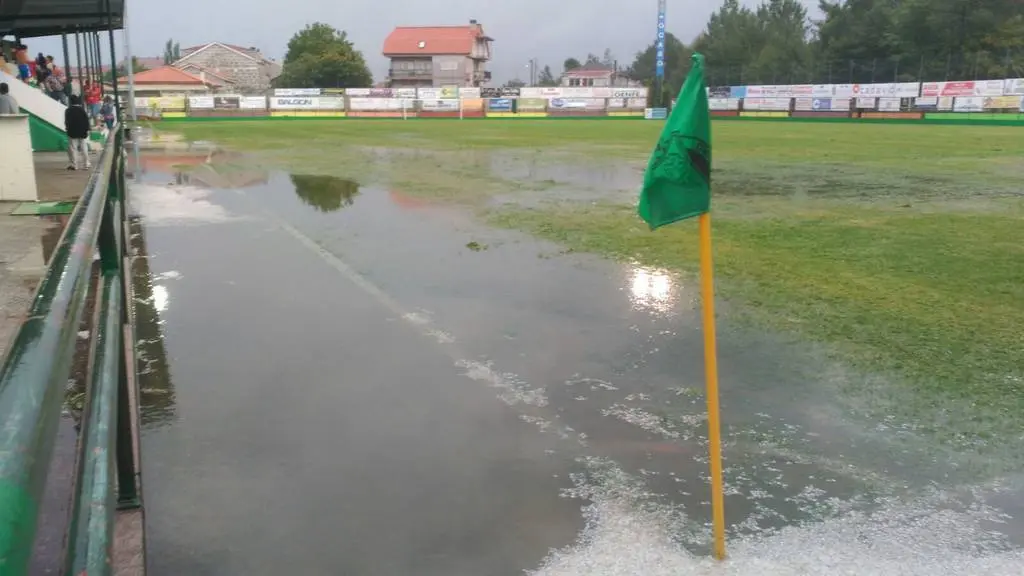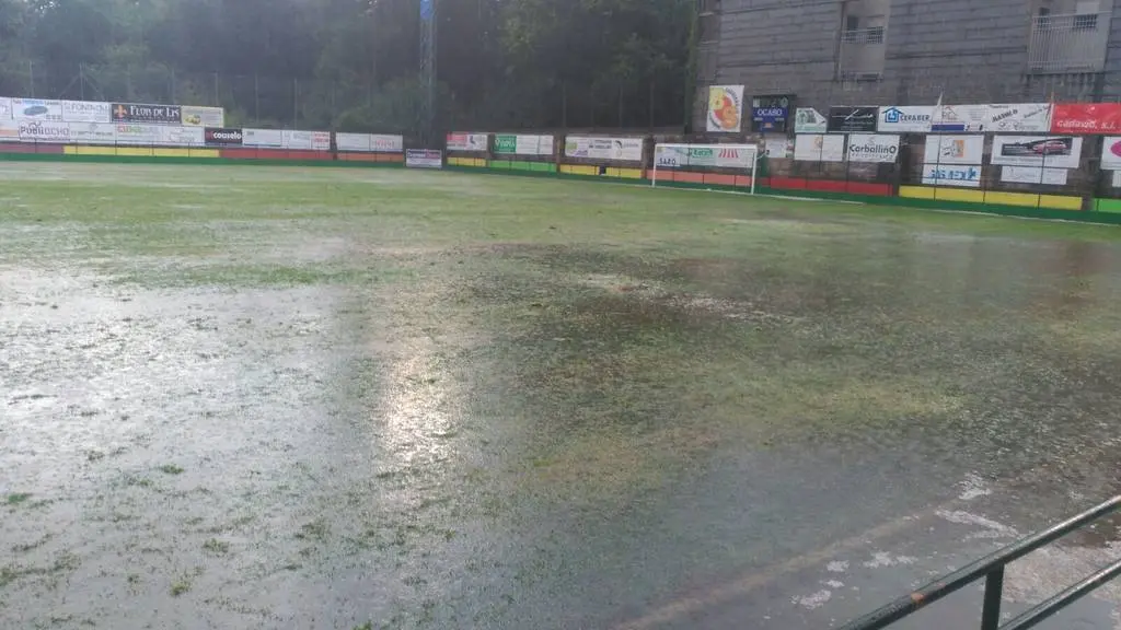 En el minuto 71 el granizo volvió a hacer acto de presencia dejando el Municipal de Espiñedo totalmente anegado e impracticable, lo que provocó la suspensión definitiva de un encuentro que deberá terminarse en un día a decidir entre la Federación Galega de Fútbol y ambos conjuntos.