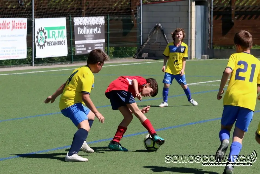 Los benjamines "A" por su parte jugaron en el mismo campo y a la misma hora -el terreno de juego se divide en 2- y estos si que golearon con comodidad al Calasancio, 3-8 resultado final con tantos de Suso (3), Mateo Fernández (2), Bilea (2) e Iker.