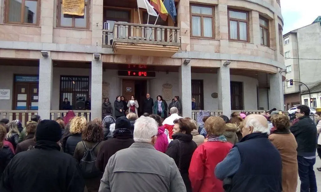 A las 12.00 horas frente a los concellos como en A Veiga, A Rúa o Vilamartín, hombres y mujeres se daban cita para visibilizar un problema enquistado en la sociedad y pedir la igualdad de derechos y oportunidades entre hombres y mujeres. Una hora más tarde era O Barco el que llenaba su plaza del Concello. Allí la edil Margarida Pizcueta ha sido la encargada de poner voz a la petición de un cambio profundo.