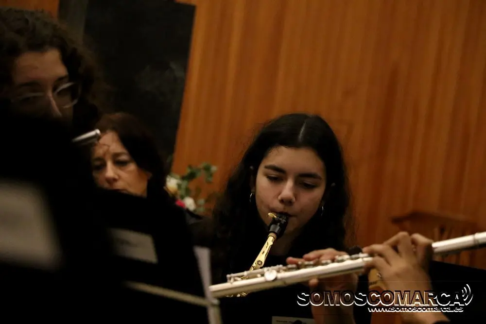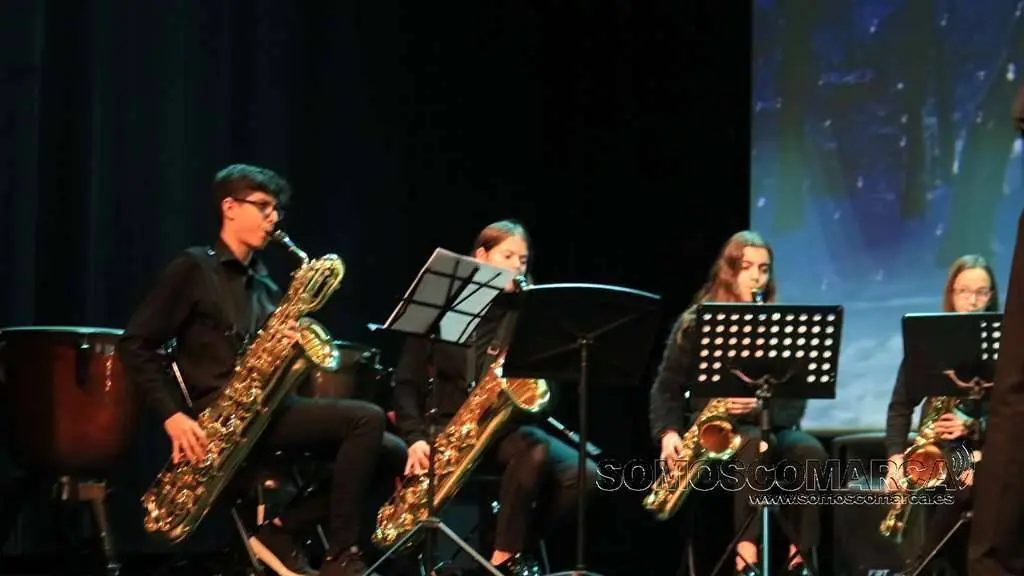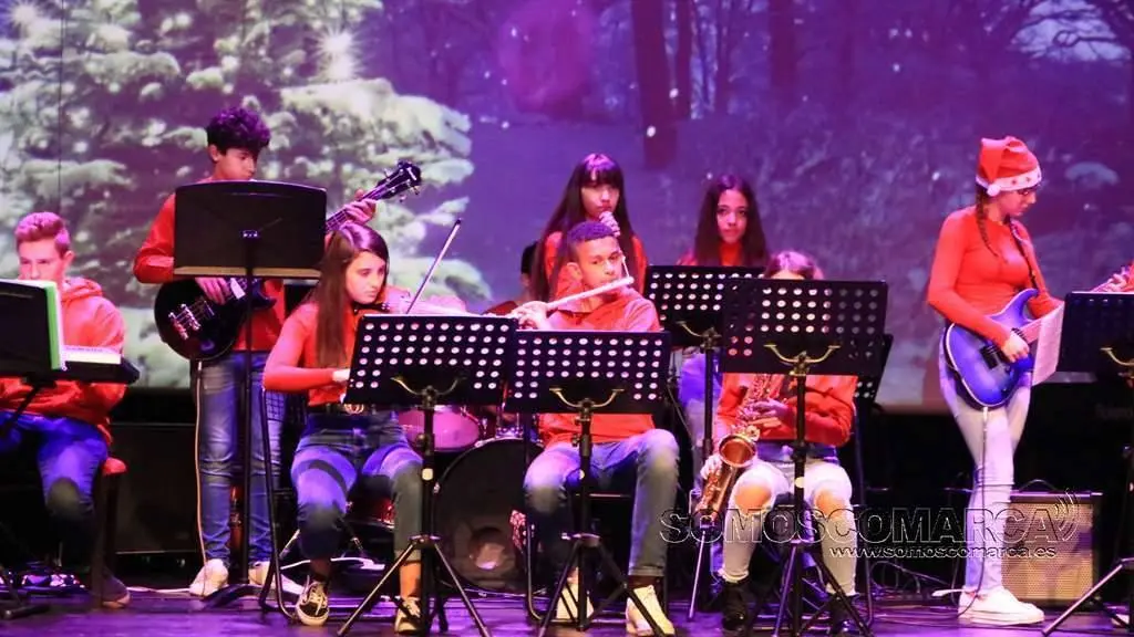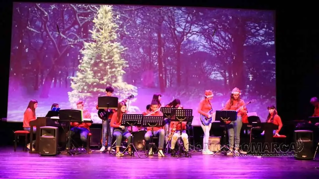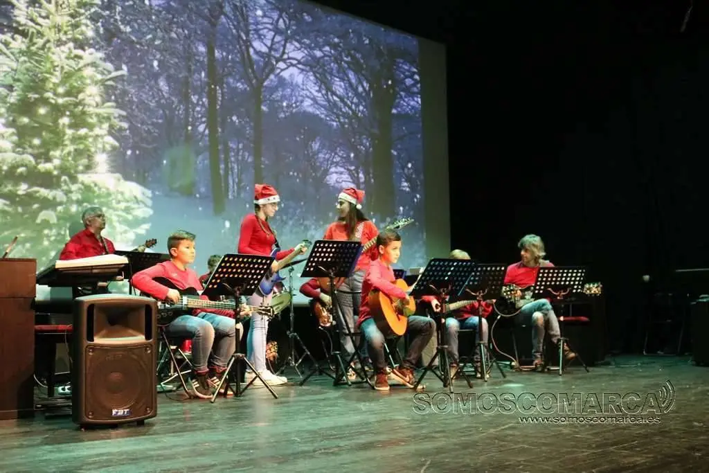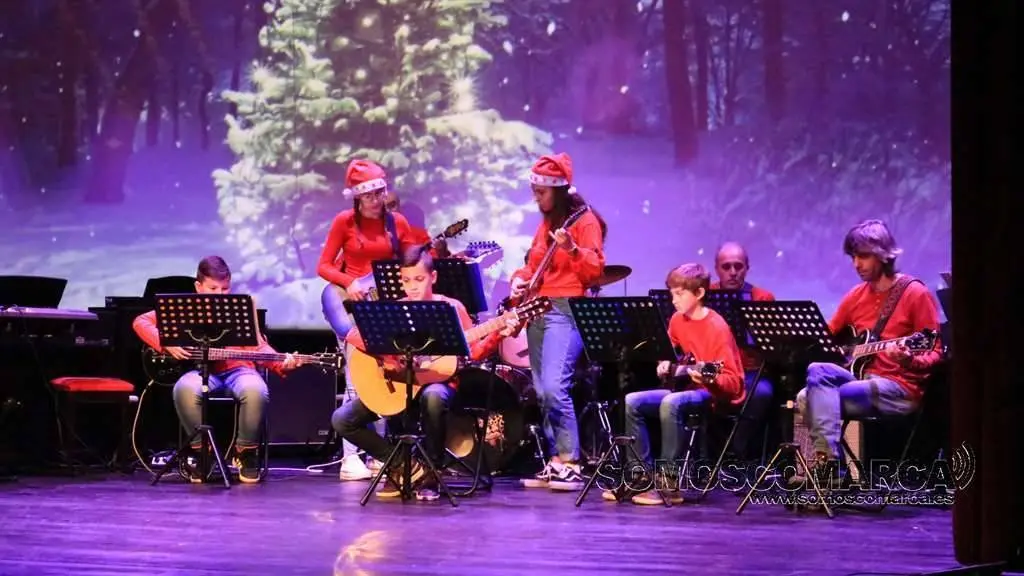 Comenzó la velada con Noche de Paz interpretada por el conjunto de adultos, para seguir la colectiva elemental con Faded y Tango ¬ cha cha. El conjunto de guitarra sorprendió con Every breath you take y Feliz Navidad. El coro alzó sus voces con da Rosa rosiña y En la más fría noche para dar paso al conjunto de viento con Juventus, Hippo's waltz, para finalizar el villancico, Arre Borriquito.