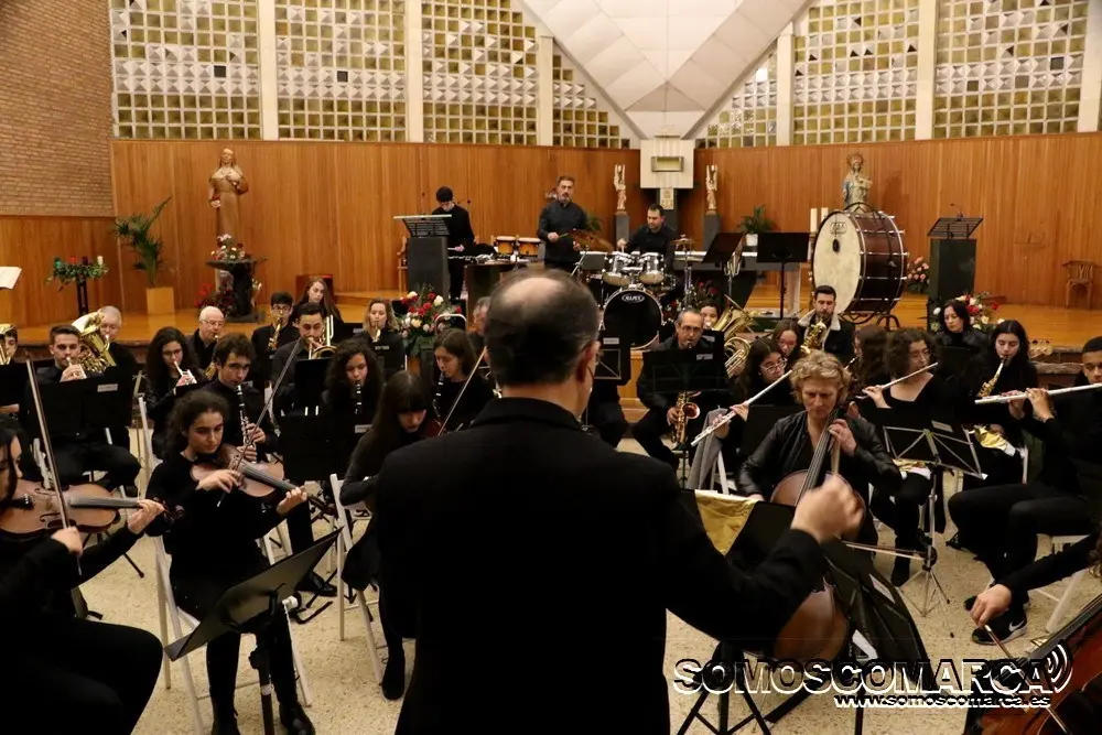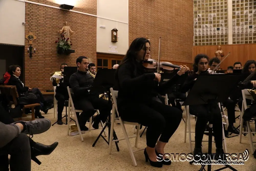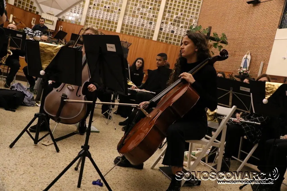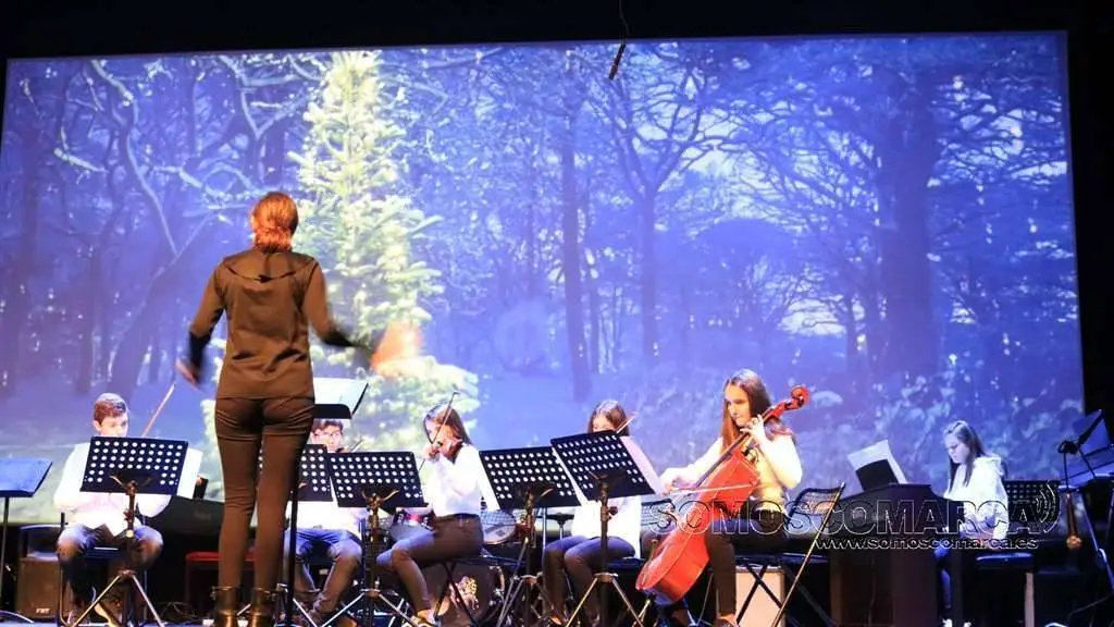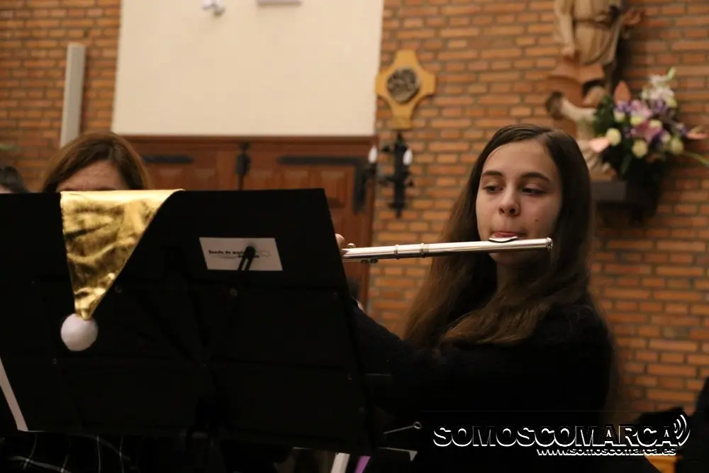 Comenzó la velada con Noche de Paz interpretada por el conjunto de adultos, para seguir la colectiva elemental con Faded y Tango ¬ cha cha. El conjunto de guitarra sorprendió con Every breath you take y Feliz Navidad. El coro alzó sus voces con da Rosa rosiña y En la más fría noche para dar paso al conjunto de viento con Juventus, Hippo's waltz, para finalizar el villancico, Arre Borriquito.