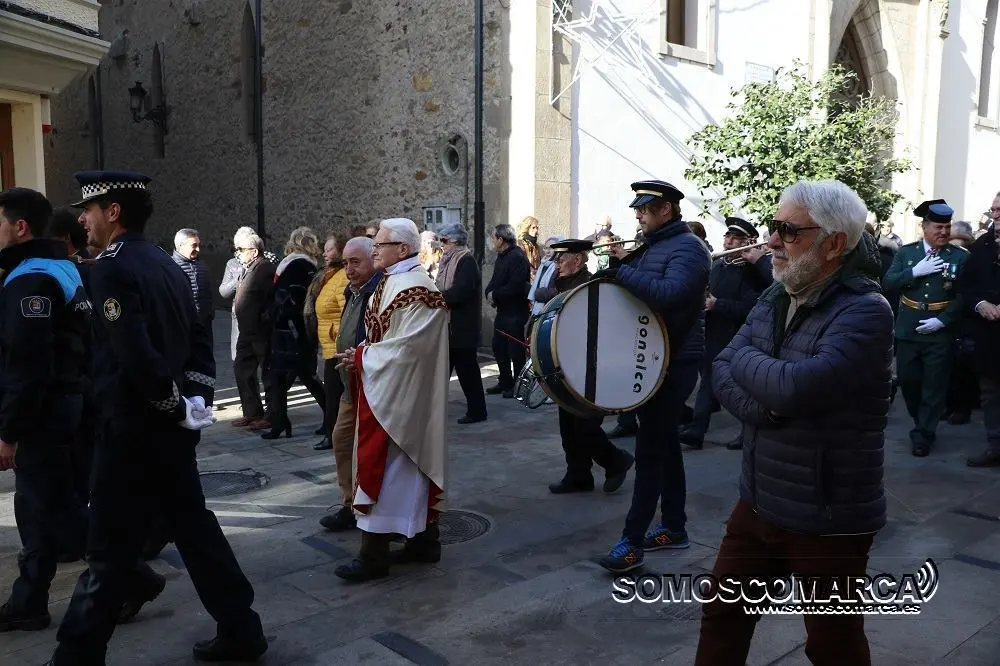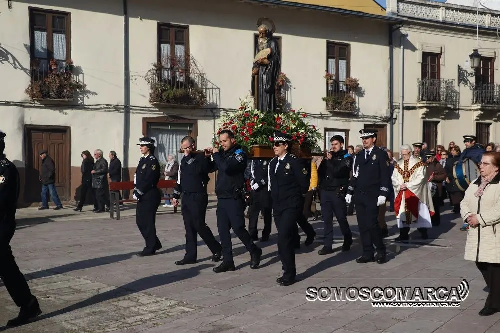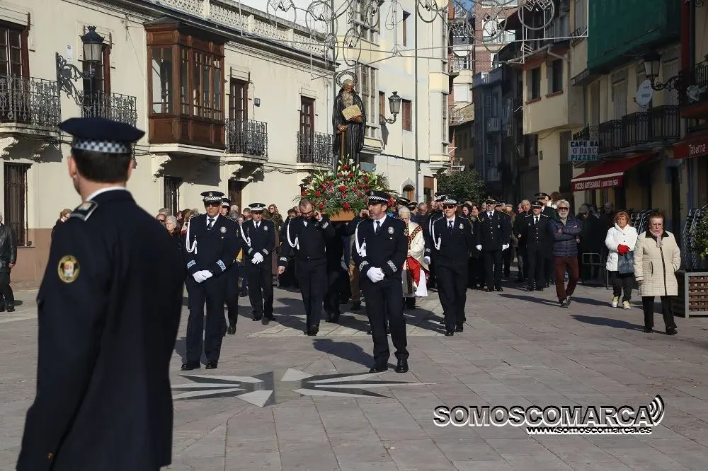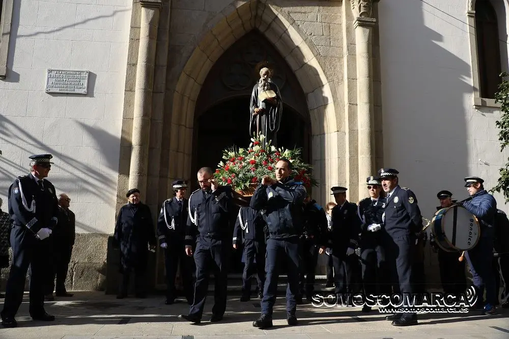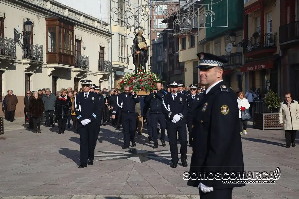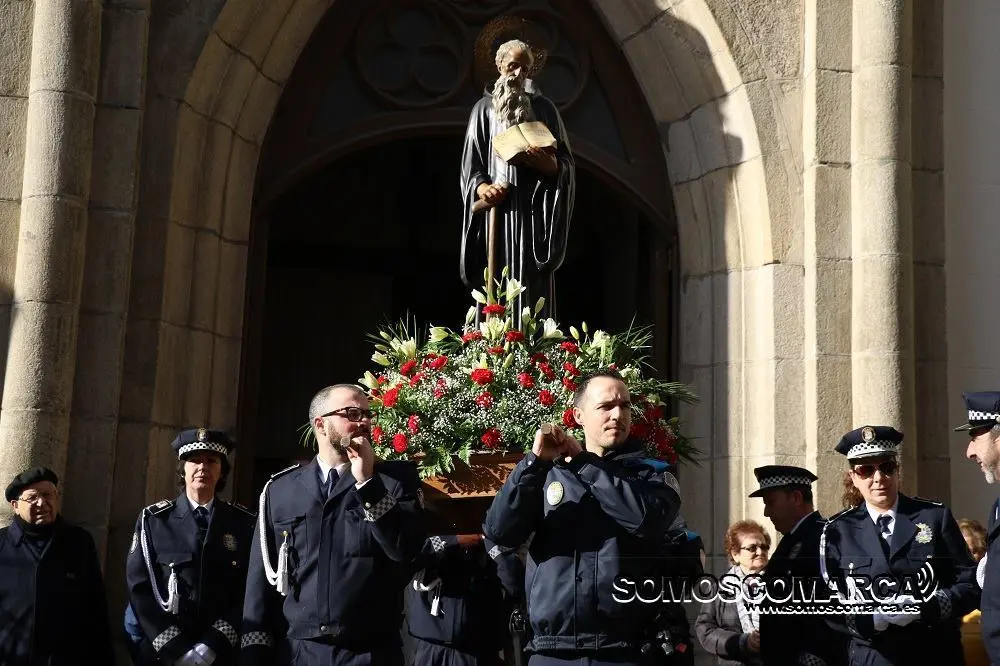 Las bombas anunciaban la procesión que a las 12:30 salía de la iglesia de San Mauro de O Barco. Los agentes portaban sobre sus hombros la imagen del santo en un recorrido que salía por las calles del casco vello y en la que también participaban los vecinos de la villa así como representantes del equipo de gobierno local, del partido de la oposición, Guardia Civil, Policía Local de Ponferrada así como algunos miembros que pertenecieron al cuerpo policial en el pasado.