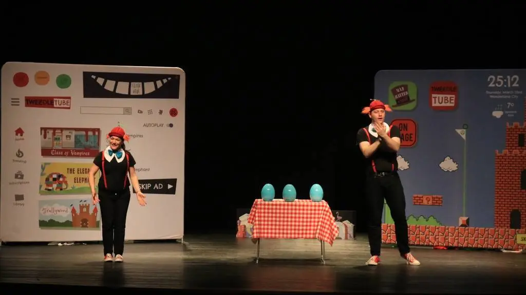 Nese momento Alicia dáse conta que chegou o momento de actualizarse. Tweedle Dee e Twee Dum soben ao coche dos youtubers e foron os encargados de guiar aos cativos través dunha hilarante viaxe para dar a coñecer a verdadeira natureza de Alicia. Todo un "vídeo de desbloqueo". Esta obra baséase na participación do público, unha experiencia práctica e divertida para asimilar novos coñecementos e aprender a expresarse en inglés.