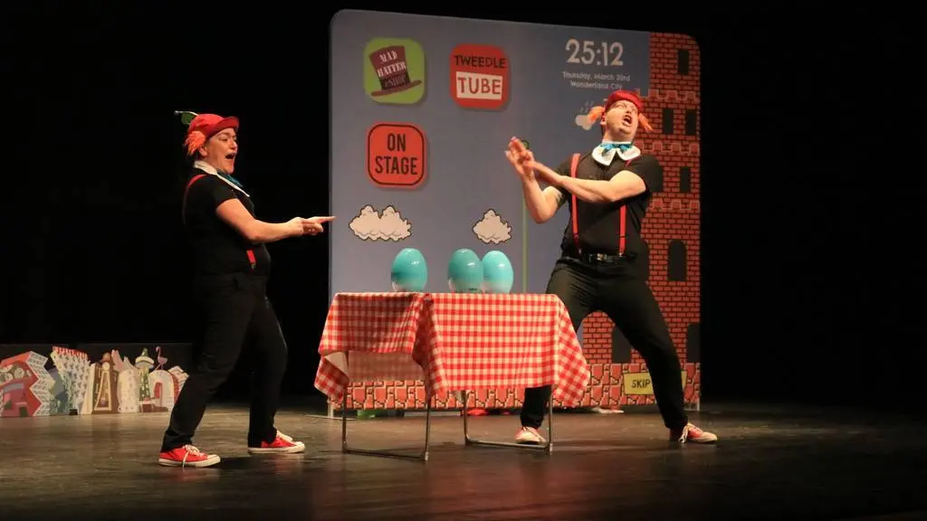 Durante algo máis dunha hora, e en dúas sesións para que todos os escolares puideran ver a obra, OnStage Company presentou a obra que trata sobre o moito tempo que transcurriu dende que Alicia visitou Wonderland por última vez e o momento no que toca volver visitalo.
