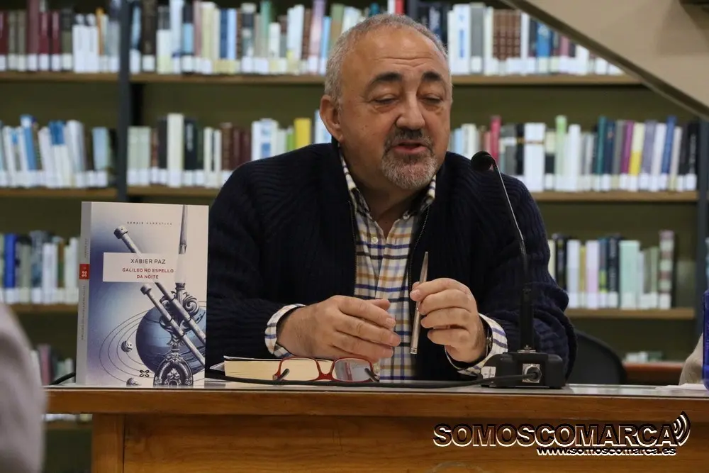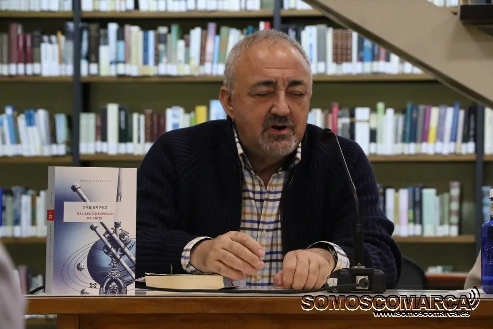 La Biblioteca Florencio Delgado Gurriarán fue el escenario de la presentación del libro "Galileo no espello da noite" escrito por el escritor vigués Xabier Paz.