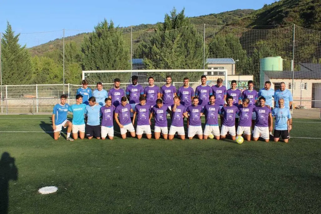 Pero no solo el balompié comarcal calienta motores, también lo hace la Carrera de las Ciudades en su segunda edición en el término de Vilamartín de Valdeorras. Con el afán de seguir apoyando esta iniciativa, nuestros futbolistas aprovecharon los descansos en sus entrenos para vestirse una vez más de morado y posar para la foto de familia con el lema de la campaña 2019: “Hoy batiré mi récord, ganarle al cáncer de páncreas”.