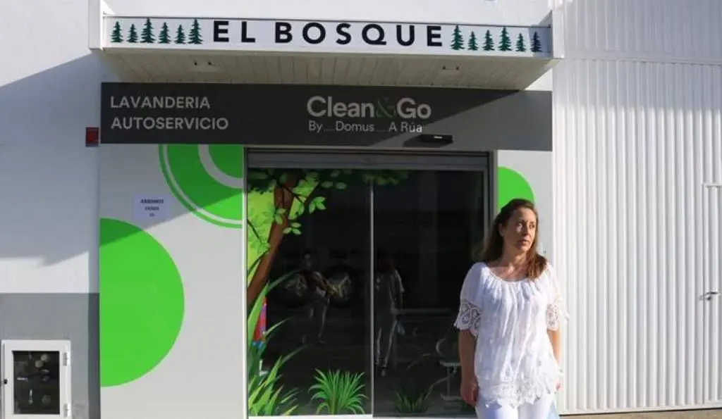 Un bosque verde es lo primero que vemos cuando entramos en la lavandería de A Rúa. Desde este lunes, 25 de mayo, este negocio abrió sus puertas con el objetivo de ofrecer un nuevo servicio a los vecinos y vecinas de A Rúa. Feli Rodríguez es su gerente y asegura que eligieron este nombre «porque queremos que los clientes estén cómodos, frescos y relajados».