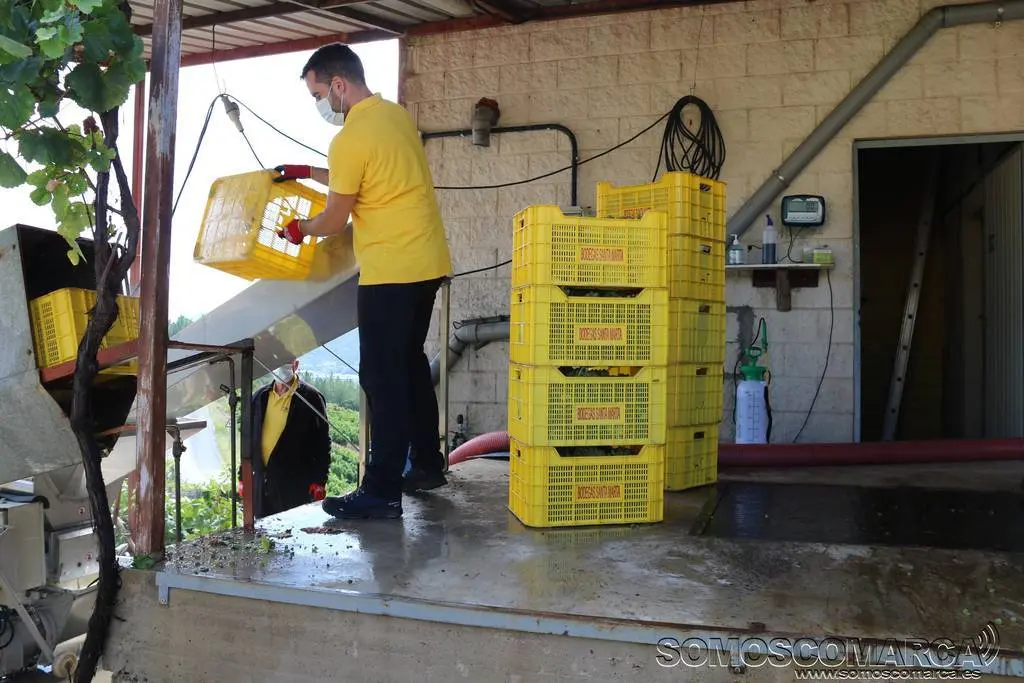 Este 2020 todo es diferente. La crisis sanitaria del Covid-19 lo ha cambiado todo y afecta a labores tan tradicionales y esenciales de la comarca como es la vendimia. Ya no hay contacto entre enólogos y viticultores y las mascarillas junto con las distancias de seguridad marcan cada jornada laboral de recogida.