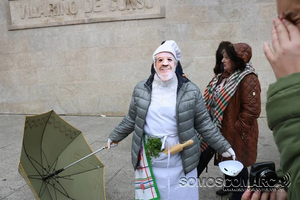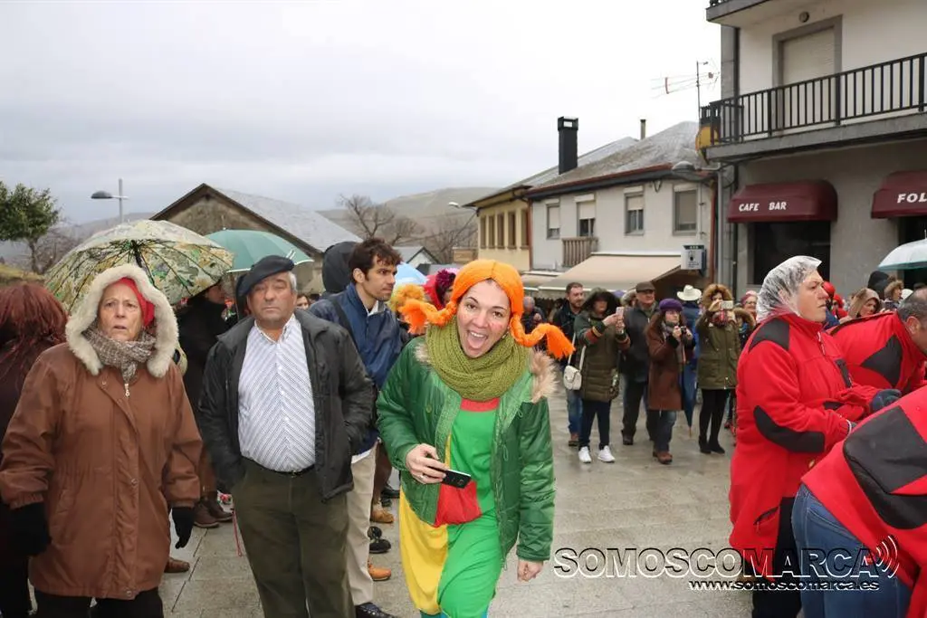 A Choiva desluciu o desfile e algúns dos folións non chegaron o tramo final por medo a que se estragasen os traxes e as máscaras. Iso si, na praza todos fixeron a súa actuación.