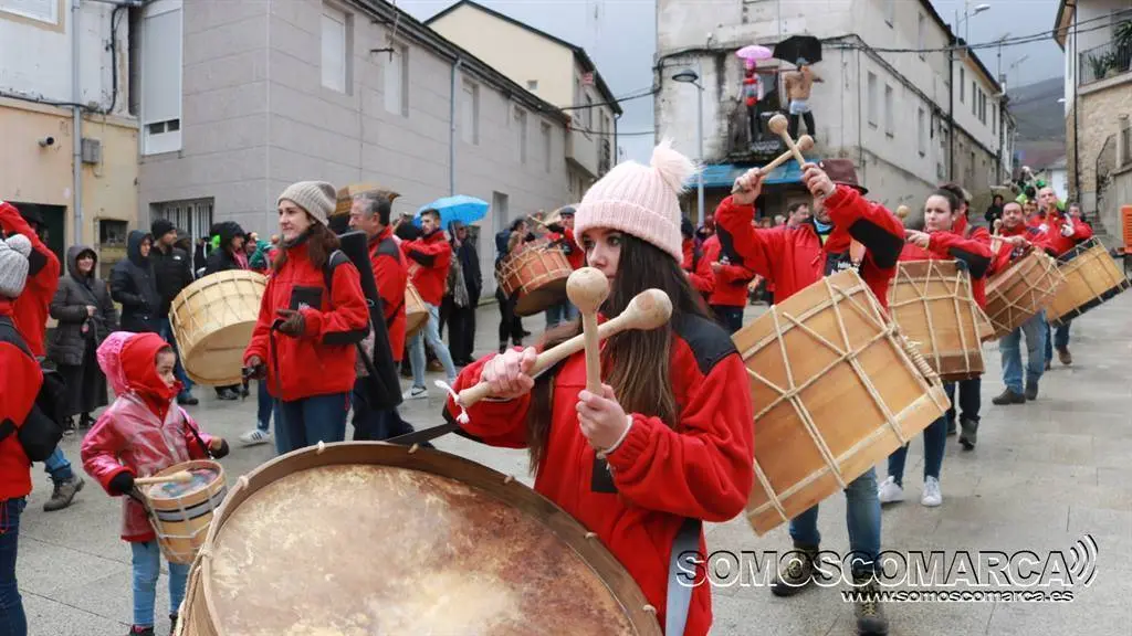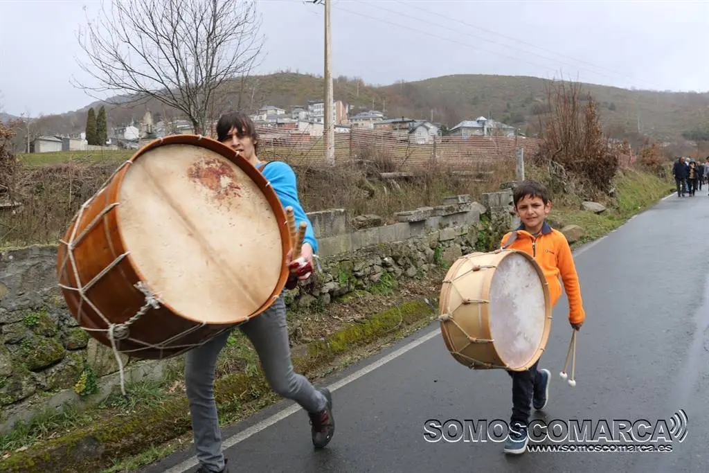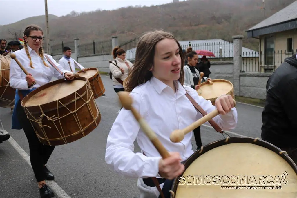 Vilariño festexou o Domingo Gordo entre o son dos bombos, o xantar do cabrito e a choiva que restou visitantes a esta localidade do oriente Ourensá e fixo menos vistoso o desfile.