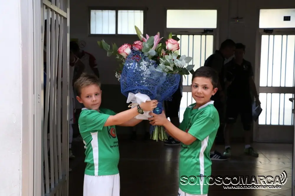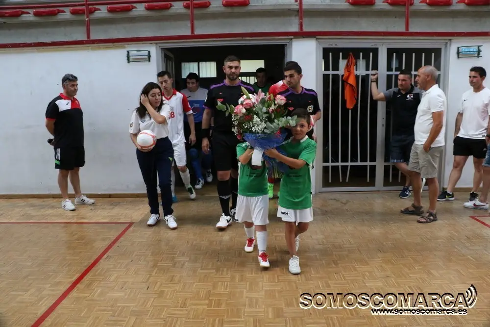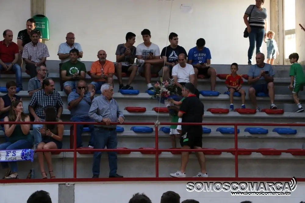 El encuentro comenzó con un emotivo homenaje a Jesús Carrera que consistió en la entrega de un ramo de flores a la familia del jugador por parte de dos jugadores de las Escuelas Municipales, el Noia Portus Apostoli entregó una camiseta firmada por todos los jugadores al capitán y hermano de Jesús, Bruno.