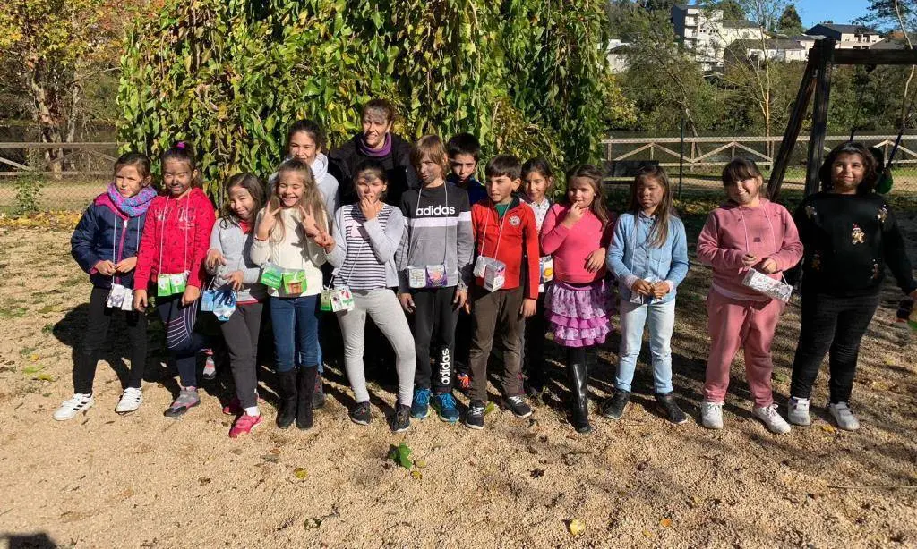 O alumnado do colexio de Ramón Otero Pedrayo elexía o Campiño de Viloira para celebrar o seu magosto.