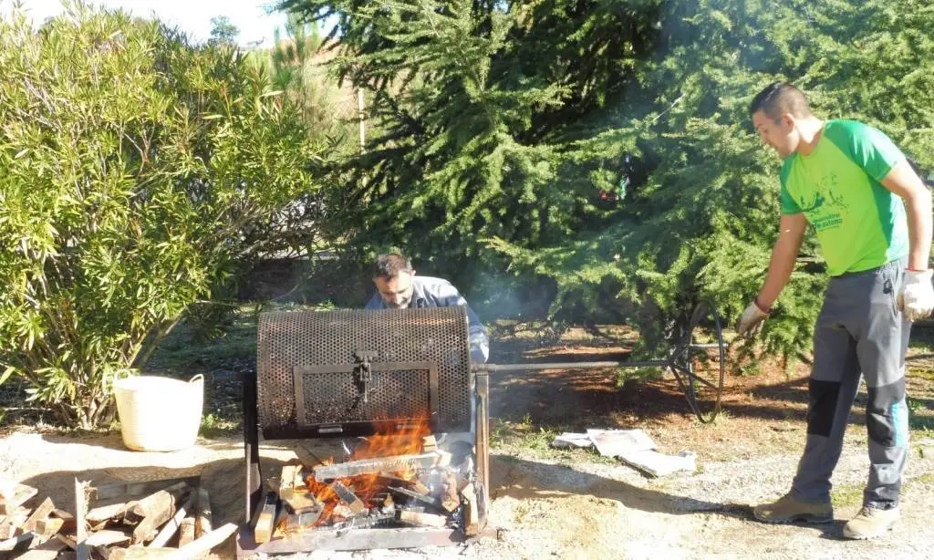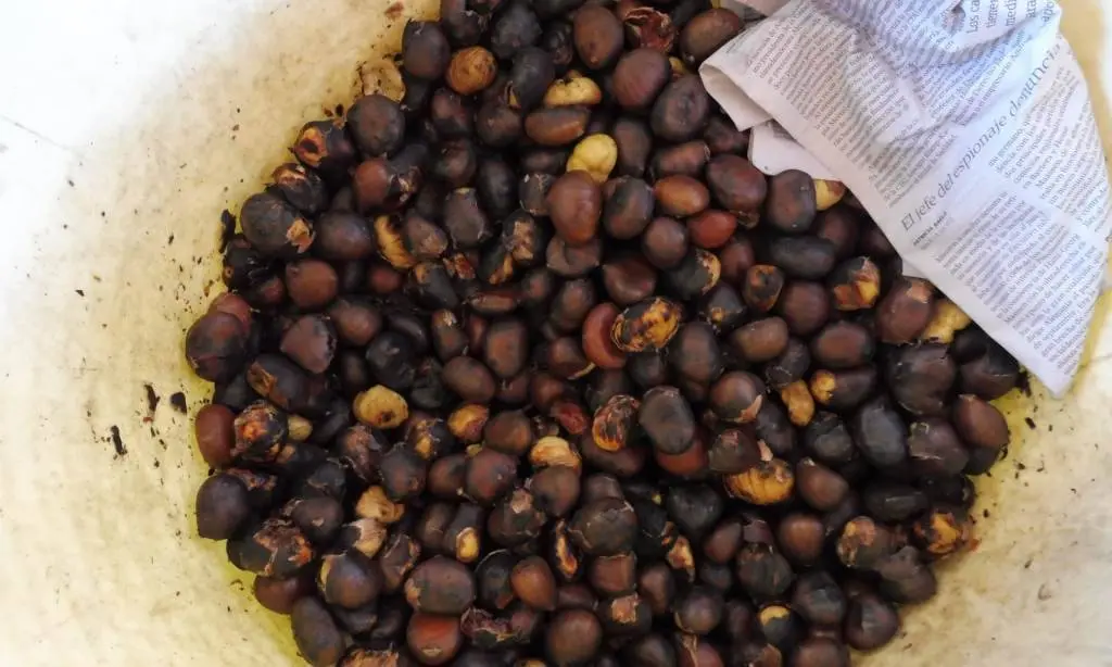 Tras os xogos, bailes e carreiras comida a base de chourizos e panceta elaborada polo conserxe Ervigio, que exerceu de chef parrilleiro e, por suposto, as ricas castañas asadas. Logo tocou, coma non, pintarse.