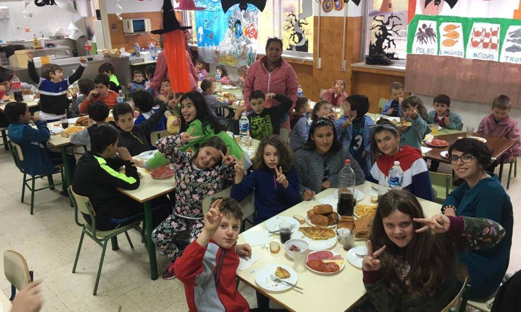 En Rubiá, no CEIP Virxe do Camiño, o magosto celebrouse cun xantar popular no comedor do colexio. As familias reuníronse en torno á mesa cos profesores e demais membros da comunidade educativa.