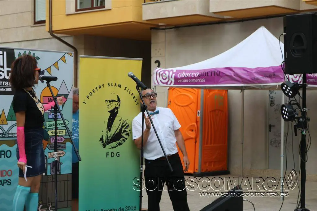 El primer día fue el turno de los Di-Versos, en este evento se subieron a la plataforma de recital del SilFest dos artistas como son, Anxo Baranga y Fátima Delgado, o mejor dicho, Flo y Lía. Flo, por Florencio Delgado Gurriarán, y Lía, por Rosalía de Castro, al que cada cual rindió su particular homenaje. Antes habían recorrido las calles de O Barco, megáfono en mano para atraer a las gentes que paseaban.