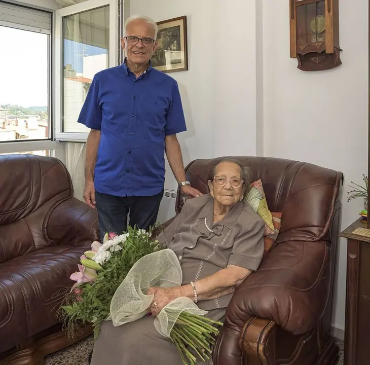 A los muchos regalos recibidos también se quiso sumar el Ajuntament de Girona, que le entregó como obsequio un ramo de flores y una carta de la alcaldesa Marta Madrenas, de la mano del Vicealcalde, regidor de Sostenibilitat, Medi Ambient, Participació i Cooperació del Ajuntament de Girona, Eduard Berloso, que pasó a visitar a Gloria para felicitarla por el aniversario de las 3 cifras.