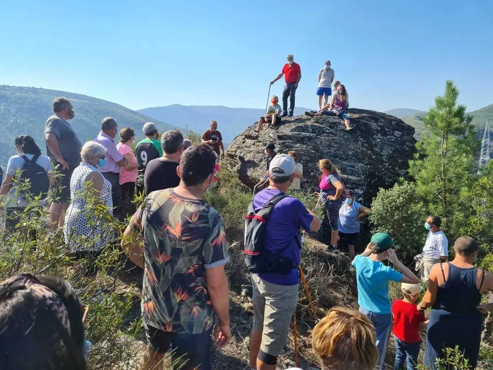 José Fernández, presidente de la sección de arqueología del Instituto de Estudos Valdeorreses, más conocido por "Pepe das Pedras" mostró a los vecinos de Larouco los secretos del castro de O Castrillón.