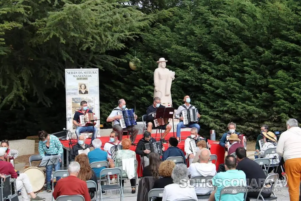 Logo da sentida actuación de María tomou o relevo o grupo de acordeóns Airiños da Porta Falsa de Manzaneda, o grupo de gaitas e danzas A Pinguela de Manzaneda, as Cantareiras da Real Banda e destacados informantes do Cancioneiro da Seitura de Manzaneda e Terras de Trives. Consuelo e Clotilde as cantareiras de Placín foron as primeiras en subir ao escenario, logo Aquilino de Vidueira, Jacinta de Lentelláis non fallou e o coronavirus ou o bichiño como ela dixo foi o seu primei cantar. Fiuca de Trives foi a derradeira en interpretar os cantares, quen neste caso cantou sen as súas dúas compañeiras.