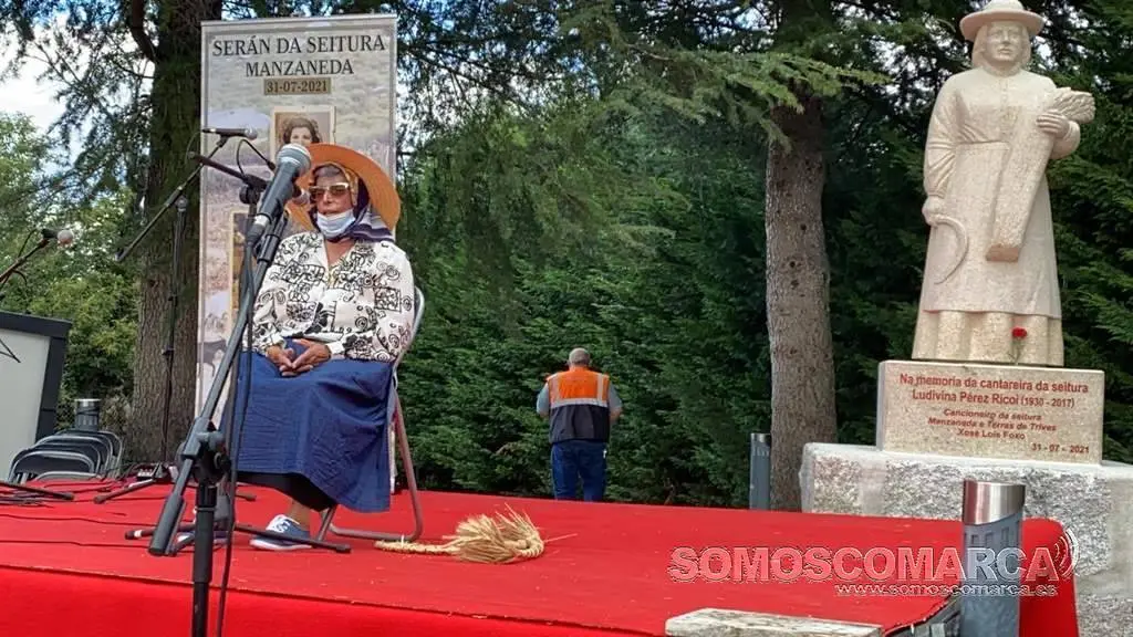 O monumento na memoria de Ludivina Pérez Ricoi quedou inaugurado na Praza da Igualdade en Manzaneda, na tarde do 31 de xullo . O acto comezou co descubrimento da figura de Ludivina realizada en granito, mentres soaba un dos seus cantares coa súa propia voz. Estiveron presentes unha morea de veciños, o alcalde de Manzaneda, Amable Rodríguez Basalo, o seu marido, a súa neta María e o director da Real Banda de Gaitas de Ourense; Xosé Lois Foxo, principal impulsor desta homenaxe e da recuperación de cantares únicos de estilo “medieval” como son os cantos de seitura. Segundo Foxo Ludivina foi unha das persoas anónimas que máis contribuíu á recuperación destes cantares.