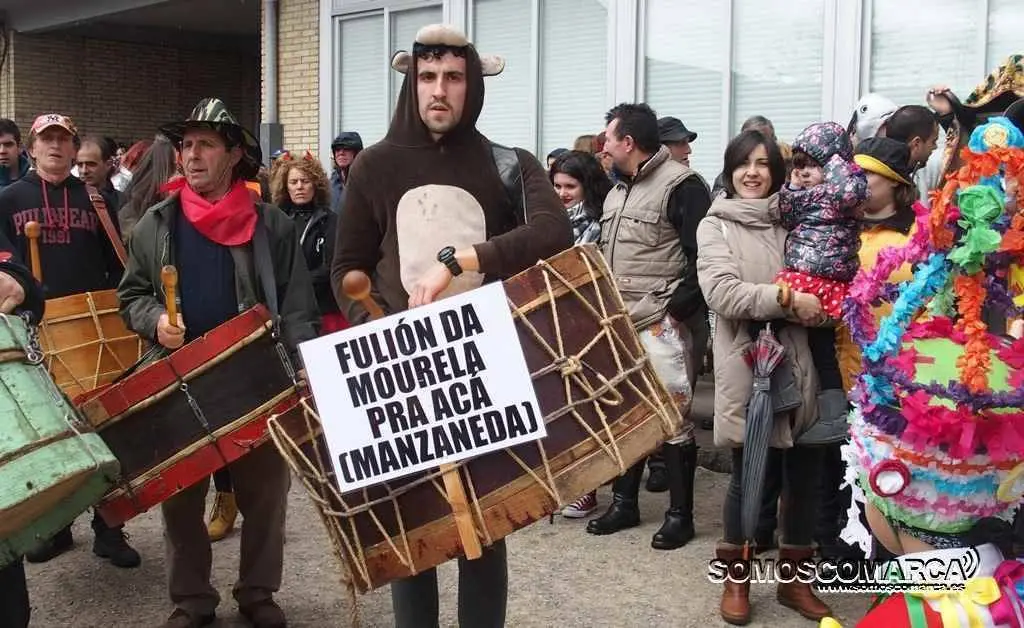 A troula en Manzaneda daba comezo coa reunión de Fulións de todas as parroquias da localidade. Algo antes das 12 da mañá comezaba, como estaba previsto, o pasarrúas. Decenas de persoas desafiaban o Martes de Entroido baixo a intensa choiva, que non amainou ata a hora do xantar, recorrendo as rúas de Manzaneda seguindo o ritmo dos Fulións. As cores dos traxes tradicionais e a música de bombos, tambores, cencerros e demais utensilios de labranza metálicos rompían a monotonía do chuvioso día. Os Fulións saíron do colexio da localidade, para pasearse polo pobo e volver ao punto de partida.