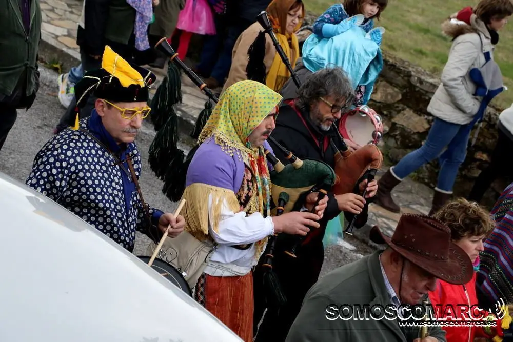 Pintaba mal la mañana del martes de Entroido en Manzaneda, las nubes, el frío y el viento acechaban, pero la climatología decidió dar un respiro y dejar salir a desfilar a unos folións que en 2018 se quedaron con las ganas de pasear.