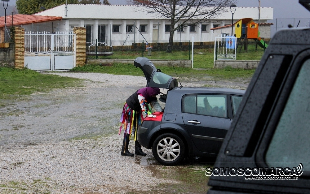 En torno a las 11:30 -hora prevista para el desfile- eran pocos los valientes dispuestos a salir en procesión, dado que la temperatura era baja -3 grados centígrados- y la lluvia era abundante. Pese a eso se confiaba en un claro que dejara salir un año más a los foliones, pero ese parón en la lluvia, pese a que parecía que sí se iba a producir, no llegó.