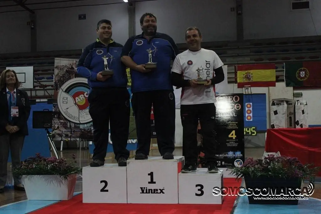 En arco recurvo sénior masculino el oro fue para el gallego Miguel Alvariño (Club Silex) mientras que la plata fue para su compañero de equipo, Daniel Castro. El pódium lo completó el portugués David Fonseca.