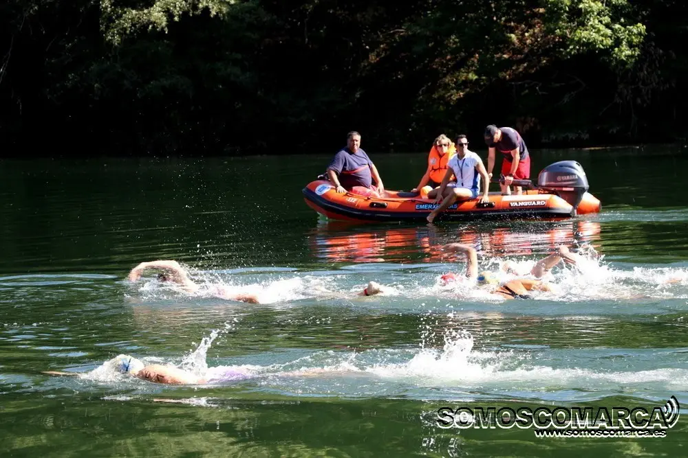 Ya de tarde los deportistas -unos 50 divididos en función de la edad- pudieron disfrutar de unas aguas agradables cuando el mercurio en superficie marcaba 36 grados centígrados en O Bañadoiro (Vilamartín), que fue el lugar elegido para el circuito de las pruebas con formato competitivo. El recorrido era de 2525 metros con salida y llegada al final de la zona de baño del concello valdeorrés, puediendo elegir los competidores 2 modalidades diferentes. O 1 vuelta al circuito de 2525 metros o 2 vueltas para hacer un total de 5050 metros.
