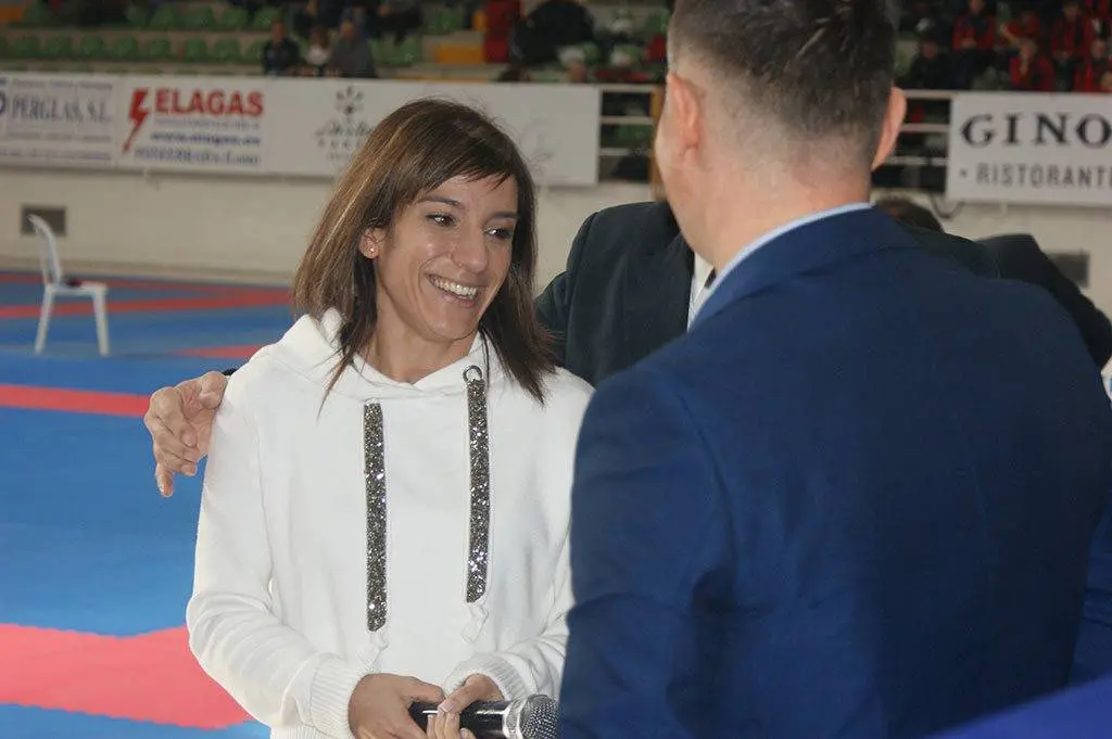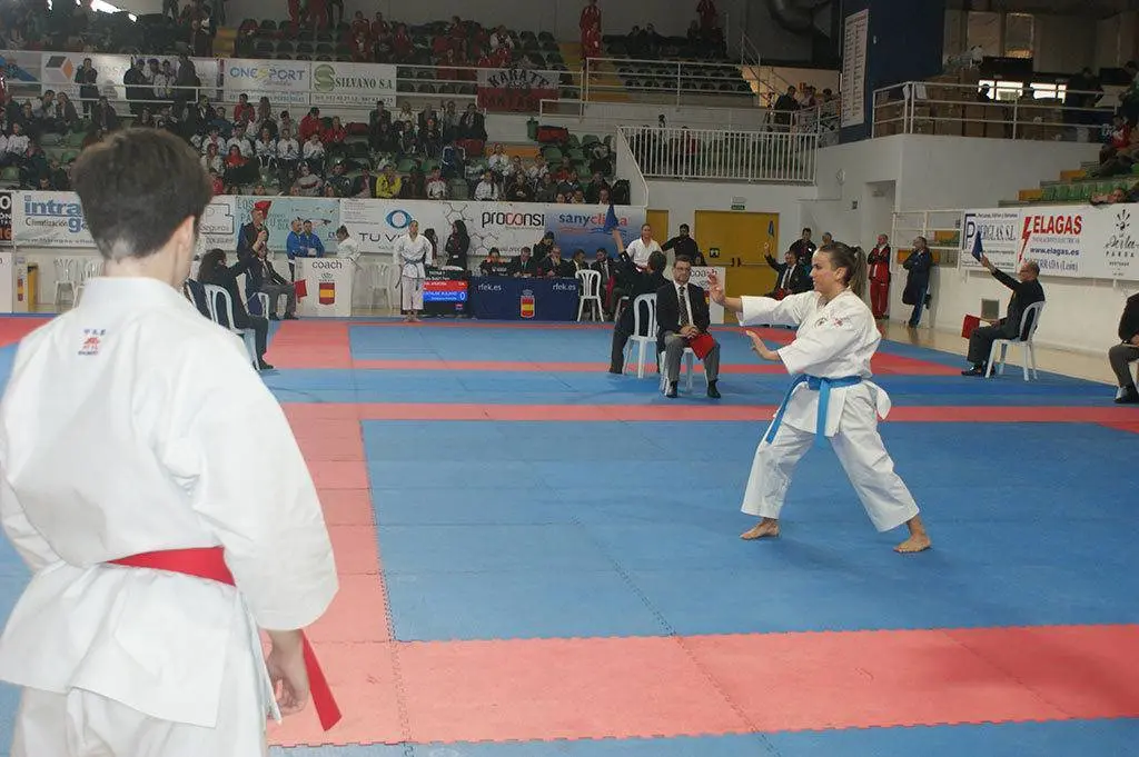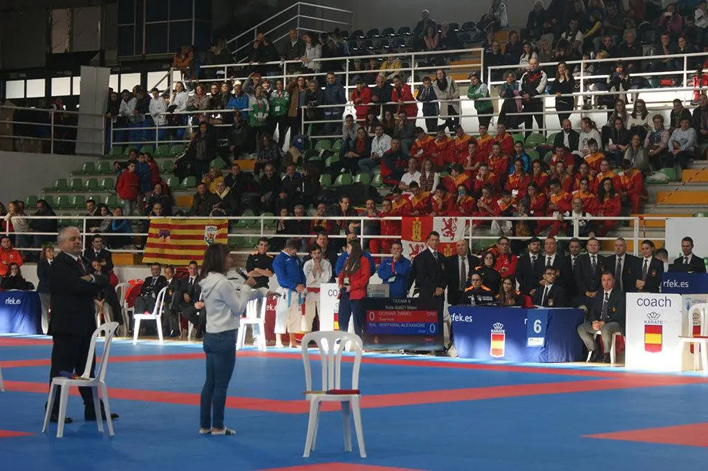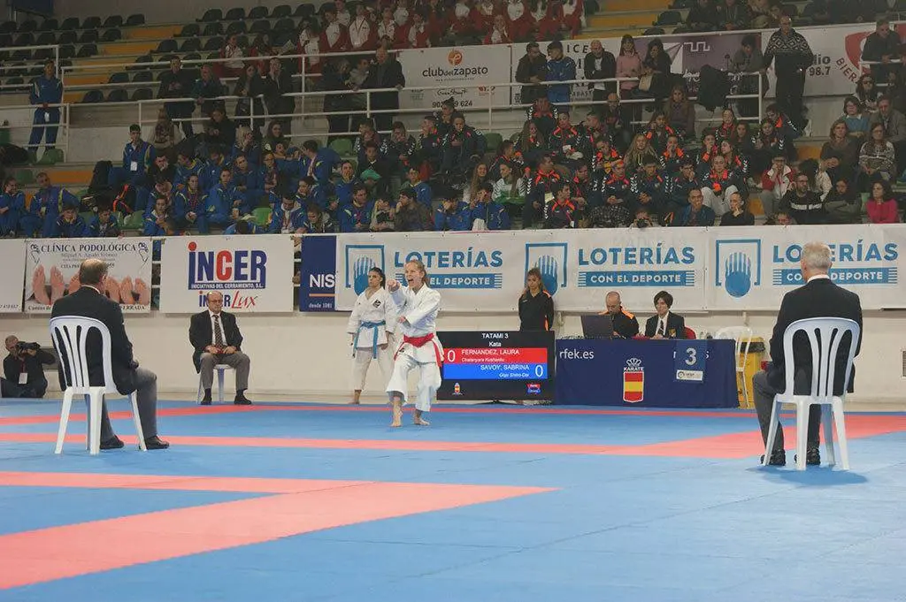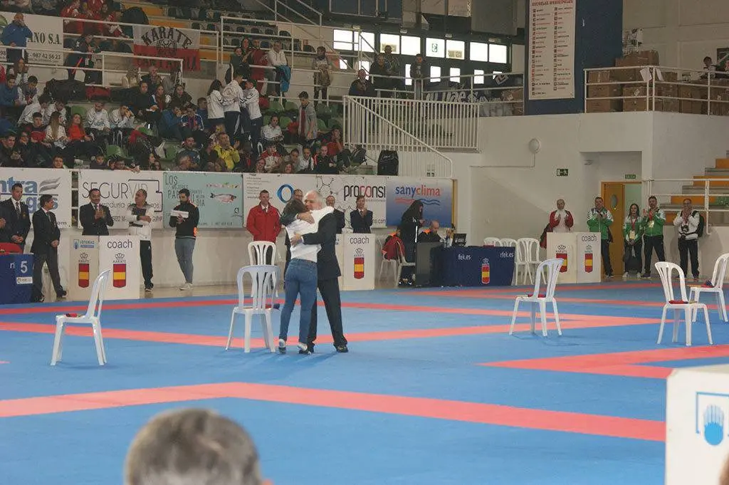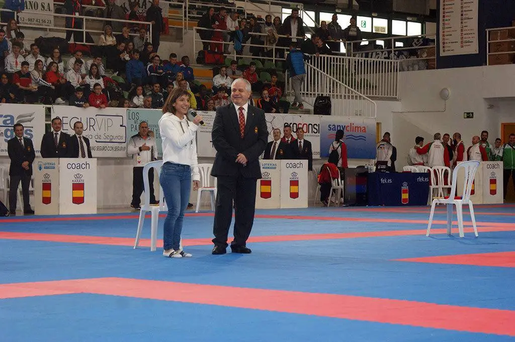 La respuesta por parte del público no pudo ser mejor. Los parkings aledaños al estadio y el pabellón se llenaban desde primera hora del sábado de automóviles y autobuses provenientes de todos los rincones de España. Las gradas bullían y esa efervescencia se contagiaba entre el público asistente. La competición de kata comenzaba temprano; las finales llegaban sobre las 12.30 horas del sábado. Y antes de disputarlas, una sorpresa mayúscula. La recién coronada como campeona del mundo, Sandra Sánchez, se descalzaba para entrar en el tatami, esta vez para dirigirse a los allí congregados a través de un micrófono en la que fue su primera intervención pública de este tipo tras su logro en la final mundial. Un discurso aplaudido, dirigido principalmente a los competidores, a los que aconsejó dejarse la piel en cada entrenamiento pero sin olvidar «que detrás de cada karateka hay una persona».