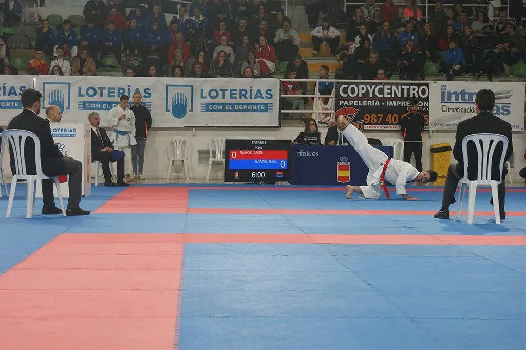 Más de 700 competidores se daban cita este fin de semana en el Campeonato de España Cadete, Júnior y Sub 21 de Karate en el Pabellón Lidia Valentín de Ponferrada, en la vecina comarca berciana. Tres eran los representantes del kárate valdeorrés que competían por el Club River Stone, dirigido por el sensei Nicolás Rodríguez, quien también es director técnico del Club de Karate Ponferrada y organizador del evento. A pesar de que para este maestro la celebración de la cita en la ciudad suponía un sueño cumplido, lo cierto es que la suerte no acompañaba en esta ocasión a los de Valdeorras y ninguno conseguía subirse al podio.